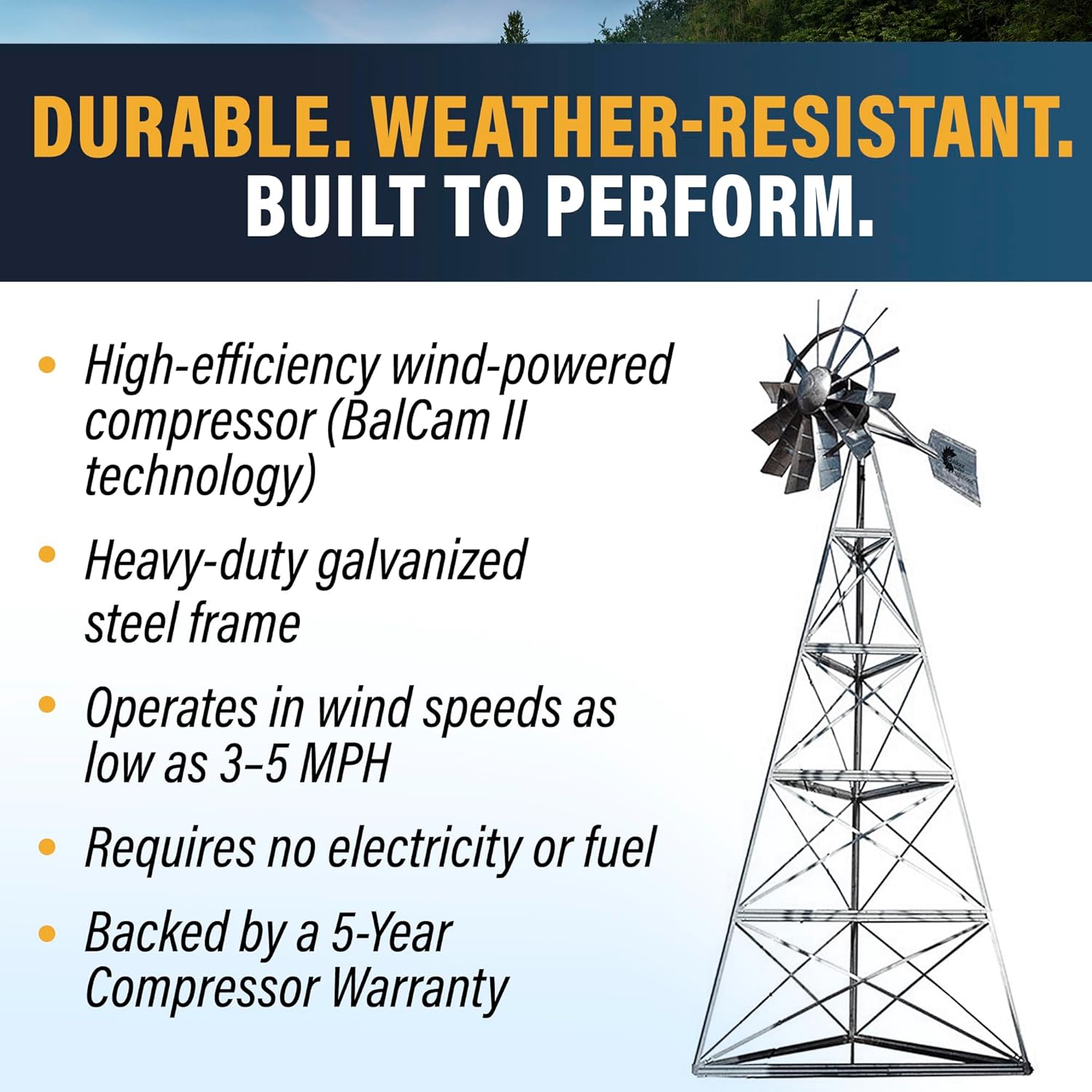 AWS0011 12-Foot Windmill Pond Aerator – Galvanized 3-Legged Aeration System – 4.5 CFM Output – BalCam Technology – Aerates Ponds Up to 1 Acre