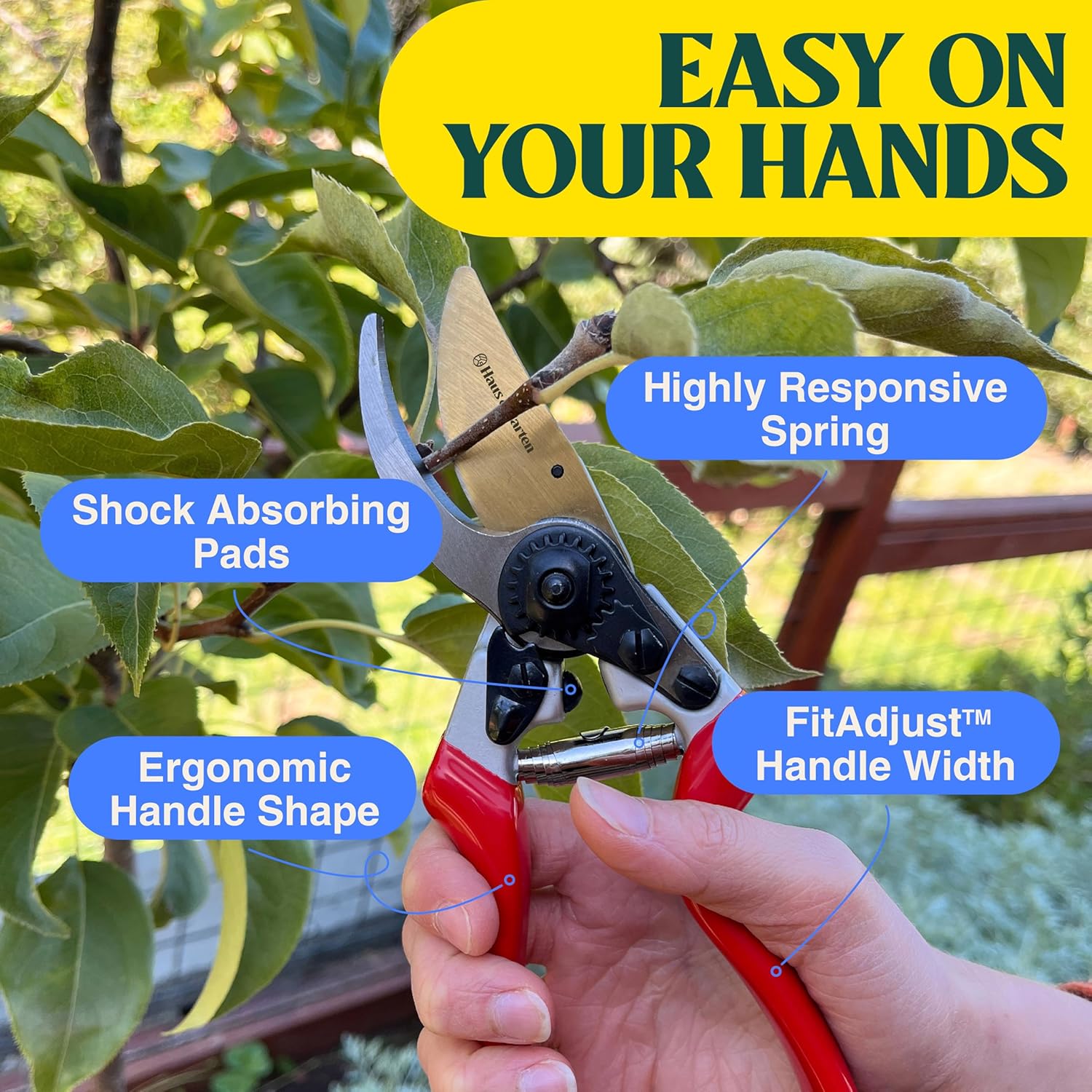 Haus & Garten EnduroPRO Ergonomic Bypass Pruners - Professional Titanium Garden Shears - Heavy Duty Hand Pruning Scissor, Tree Trimmer, Gardening Tool, Branch, Hedge, Rose, Shrub & Bush Clippers
