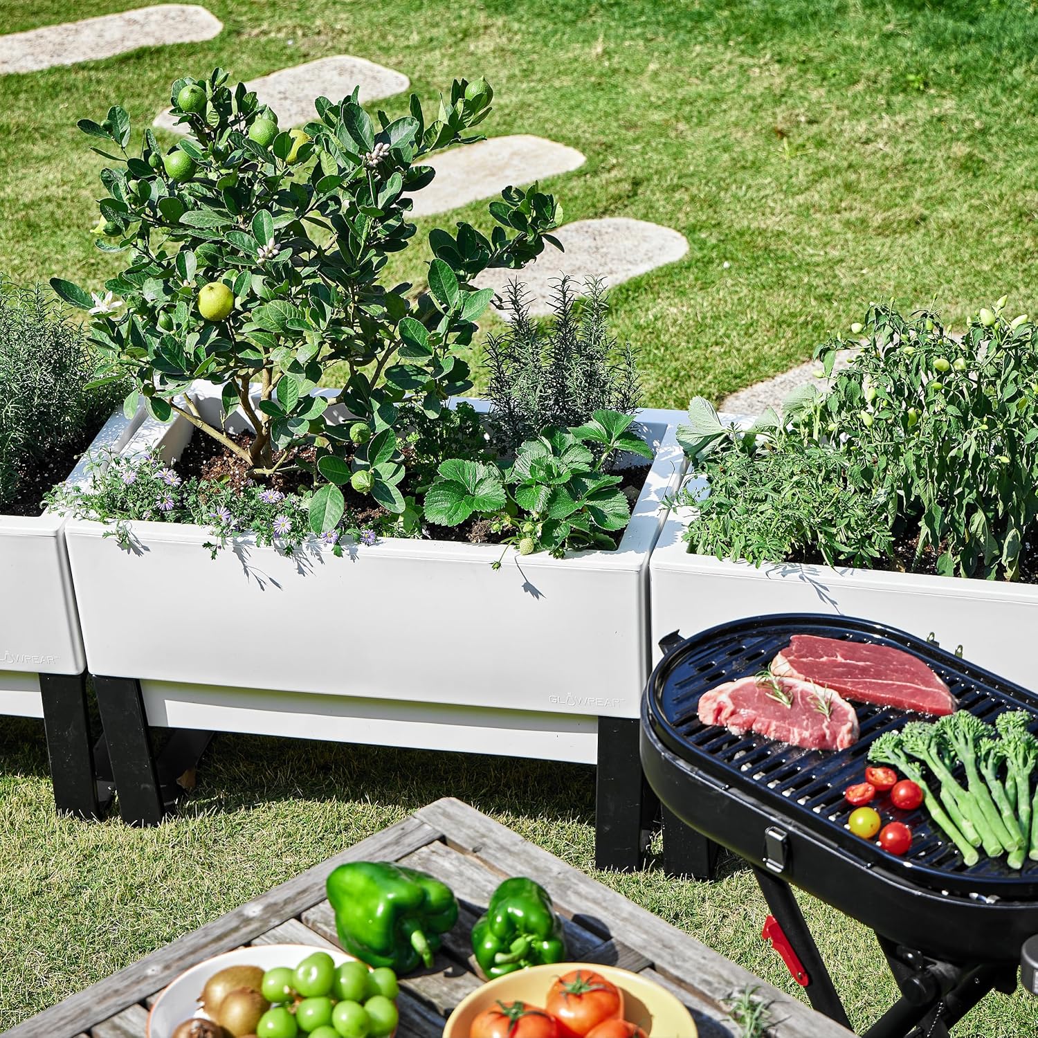 Glowpear Self Watering Planter Box - 29.5", White - UV Stable, Scalable Urban Raised Garden Bed with Water Gauge, Indoor Outdoor for Vegetables, Flowers, Herbs, and Succulents, Gardening