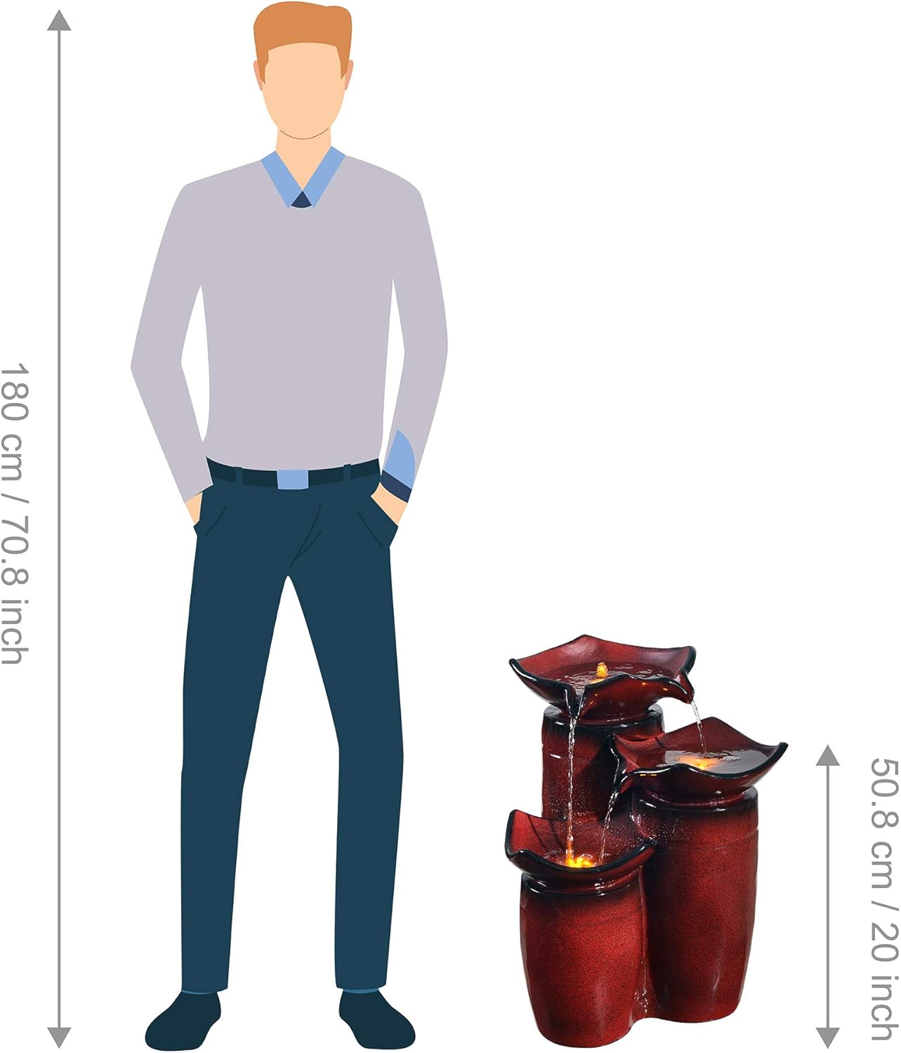 Teamson Home 3 Tiered Floor Water Glazed Pots Fountain with LED Lights and Pump for Outdoor Patio Garden Backyard Decking Décor, 20 inch Height, Gradient Red