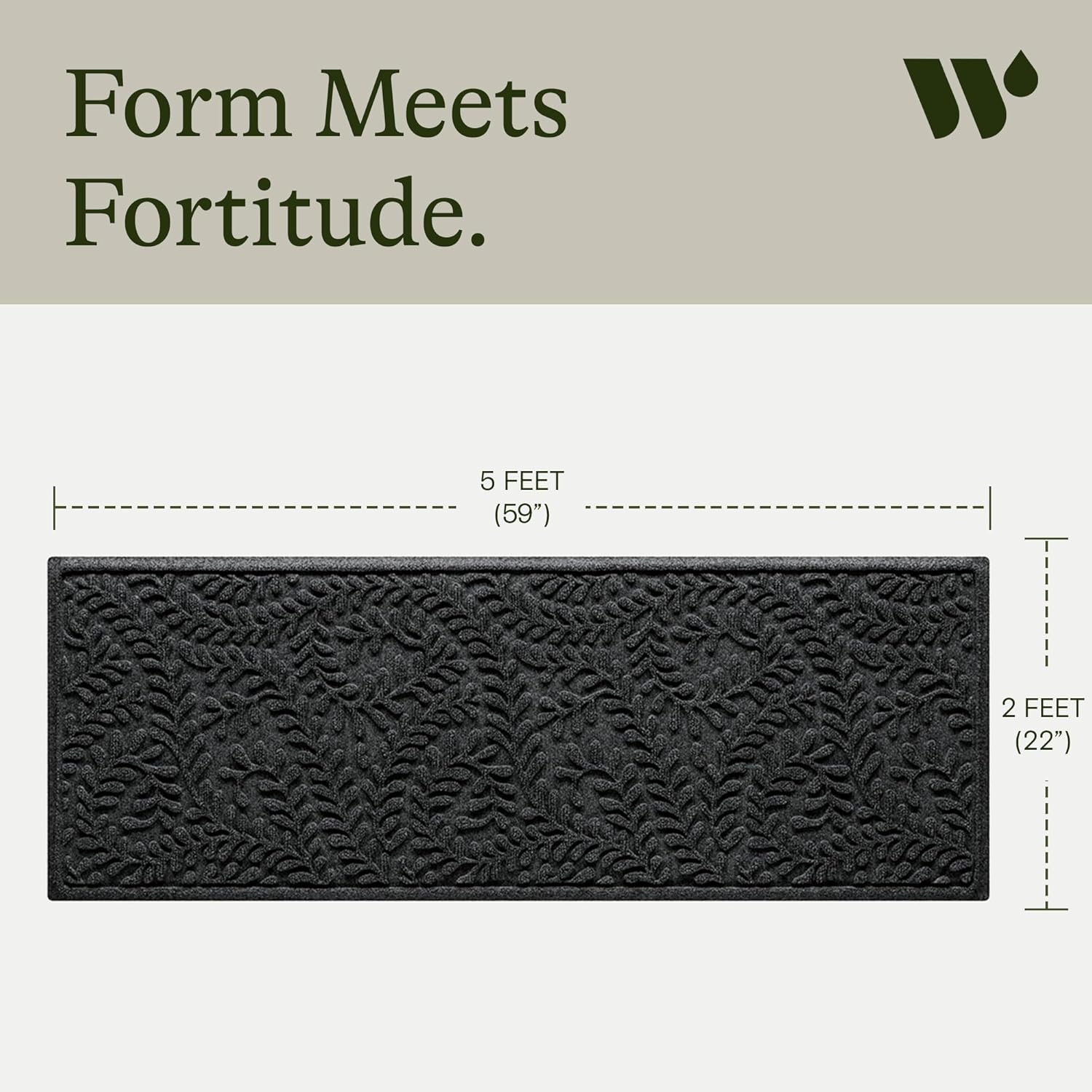 WaterHog Indoor/Outdoor Door Mat, 2' x 5', Made in USA, Durable & Skid-Resistant Front Door Rug, Decorative, Water-Trapping & Heavy-Duty Entryway Floor Mat for Your Home, Boxwood Collection, Charcoal