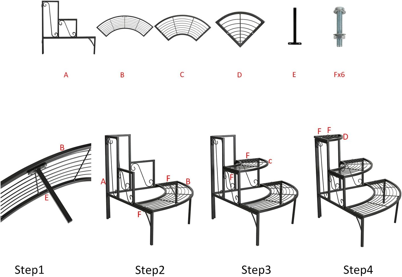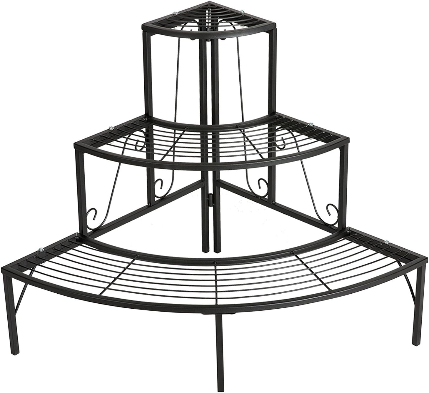 DOEWORKS 3 Tier Plant Stand Flower Pot Rack, Quarter Round Plant Corner Shelf Planters Display Holder orchid shelves for Indoor Outdoor Use, Black
