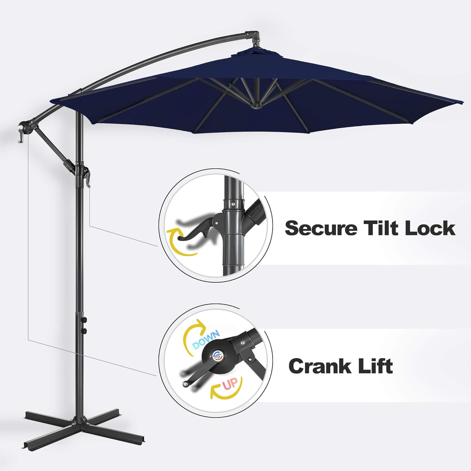 FLAME&SHADE 10ft Cantilever Patio Umbrella Outdoor, Large Offset Umbrella with Crank and Cross Base, UPF 50+ UV Protection Hanging Umbrella for Pool Deck Garden, Navy Blue