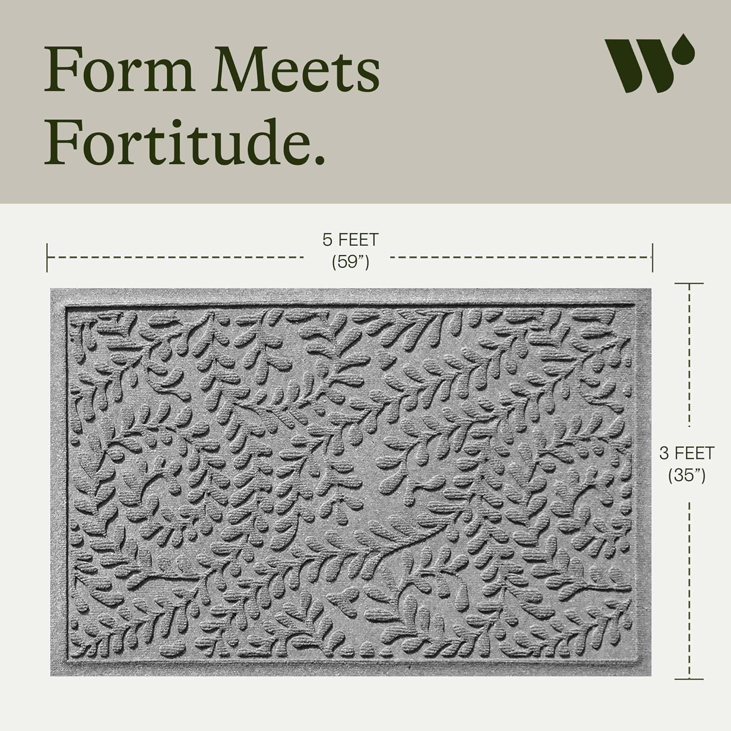 WaterHog Indoor/Outdoor Door Mat, 3' x 5' Made in USA, Durable & Skid-Resistant Front Door Rug, Decorative, Water-Trapping & Heavy-Duty Entryway Floor Mat For Your Home, Boxwood Collection Medium Grey