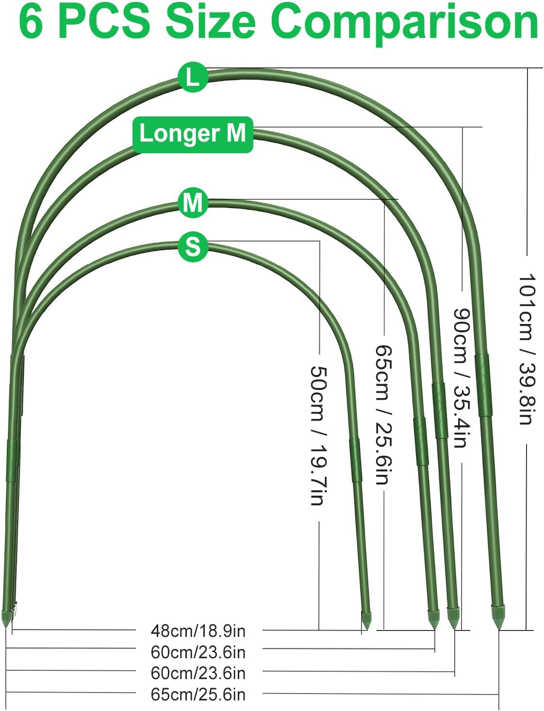 FOTMISHU 6Pcs Greenhouse Hoops, 23.6" x 25.6" Garden Hoops Rust-Free Grow Tunnel 4.9ft Long Steel with Plastic Coated Support Hoops Frame for Garden Fabric, Plant Support Garden Stakes