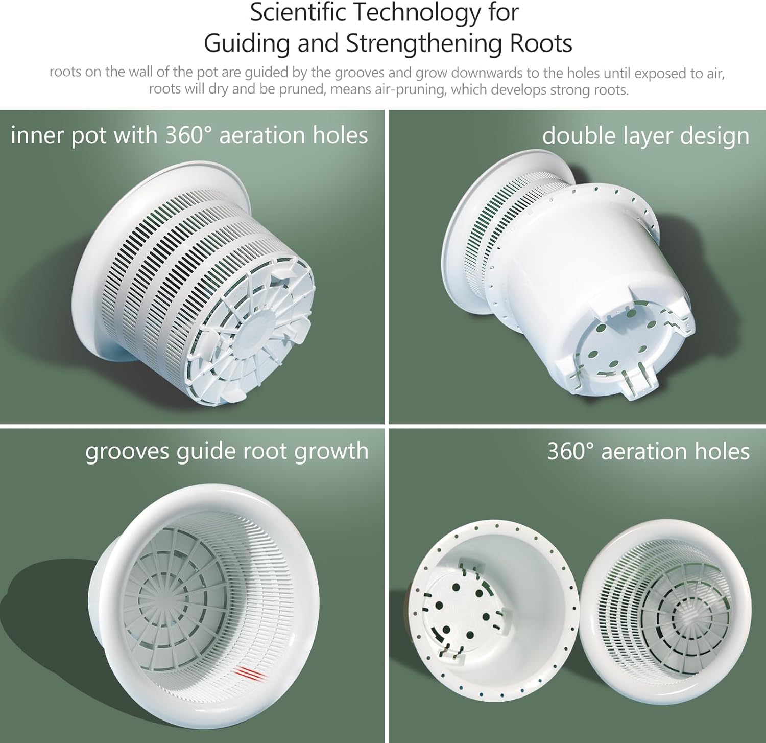 - 8 Inch Orchid Pot Owns Scientic Controlling Roots Technology,Develop Strong Lateral Roots: When roots grow to inwall of the orchid pot,roots are guided by the grooves and grow downwards to the ventilation holes around the orchid pot,roots exposed to air through the holes will dry and be pruned,and the pruned roots develop a large number of strong lateral roots inside the orchid pot,so as to achieve the effect of controlling roots and strengthening roots to provide more nutrients for orchids.