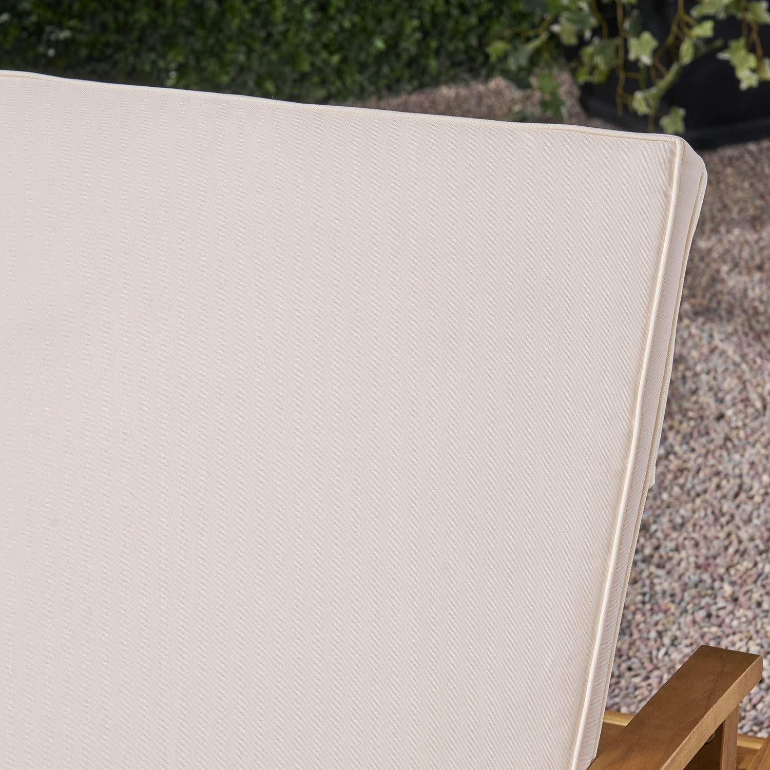 Great Deal Furniture Samantha Double Chaise Lounge for Yard and Patio, Acacia Wood Frame, Teak Finish with Cream Cushions, (307569)