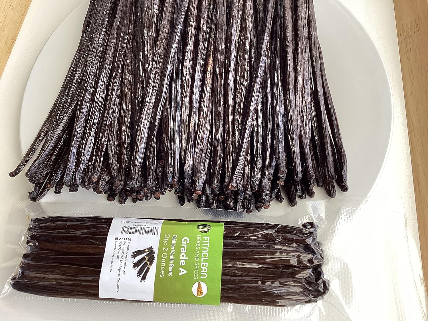 2oz Tahitian Vanilla Beans Grade A for Extract, Cooking and Baking by FITNCLEAN VANILLA| 2 Ounces (1/8Lb) Bulk 6"-7" Fresh Gourmet NON-GMO Pods