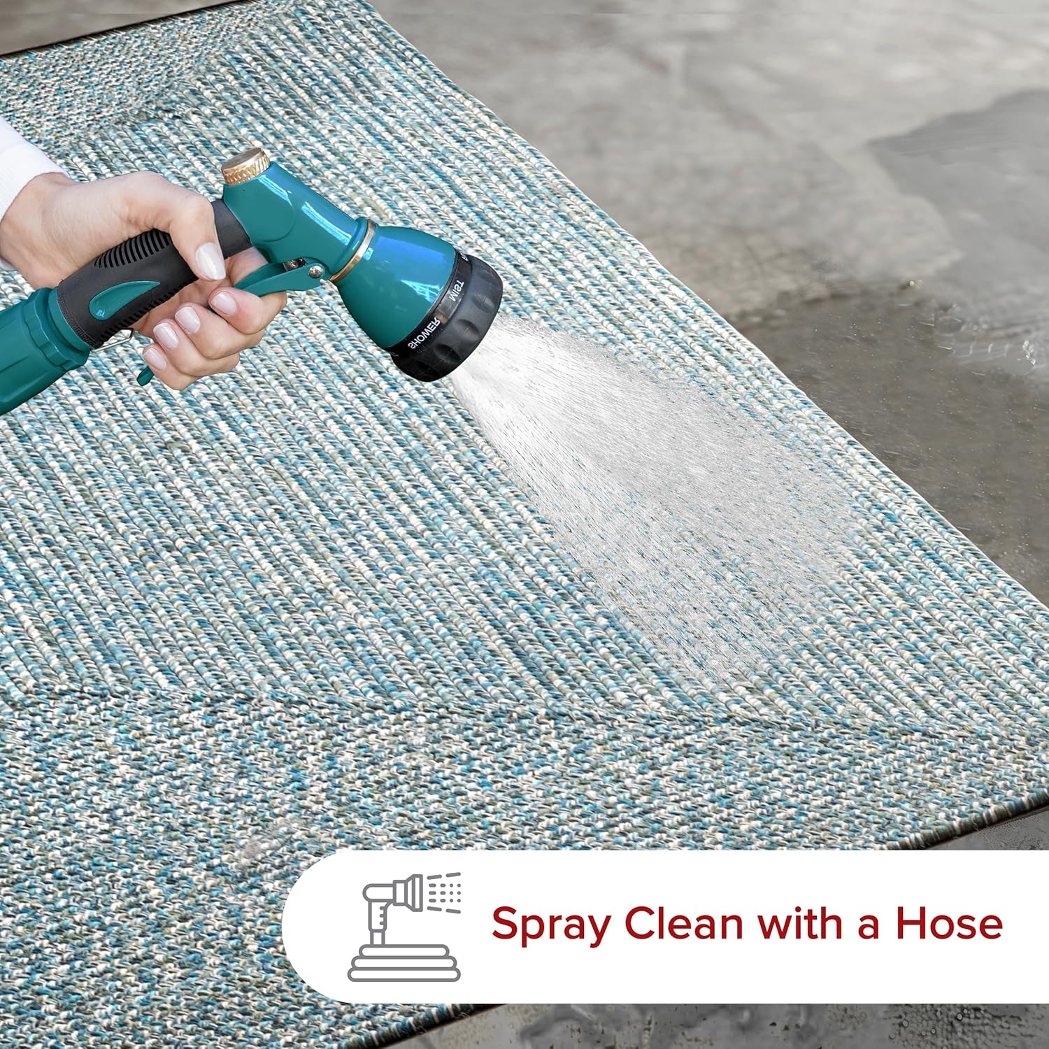 - Outdoor Rug Care Instructions: Easy to care for, simply shake out your outdoor rug to remove any light dirt or debris and spray your area rug with a hose for stubborn stains. This is the perfect patio rug or front porch rug to elevate your home.