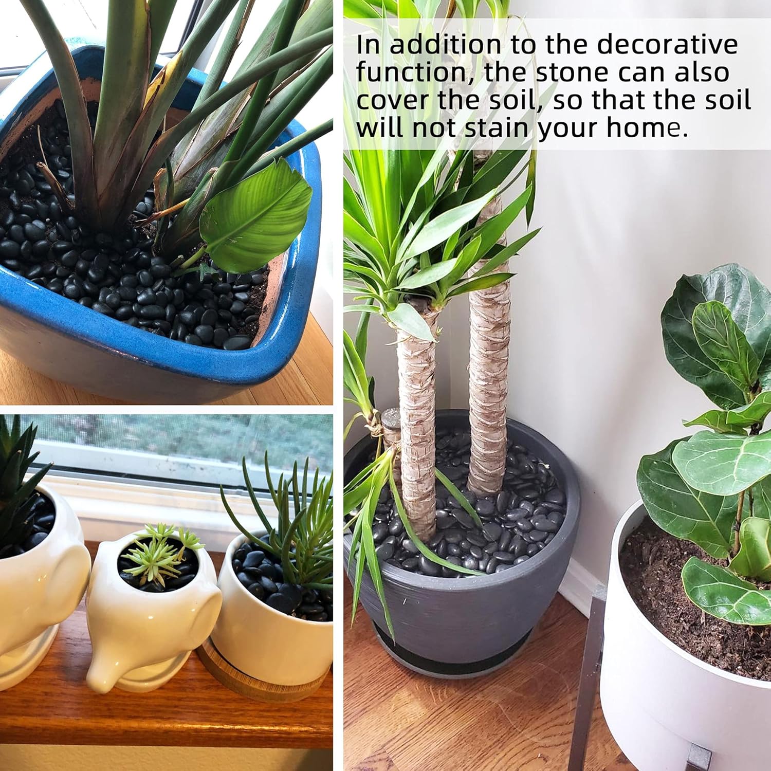 - 🌑【NATURAL STONES】- These black stones are non-toxic and eco-friendly river rocks. Their natural attribute will make them last longer because they will not deteriorate like mulch does.
