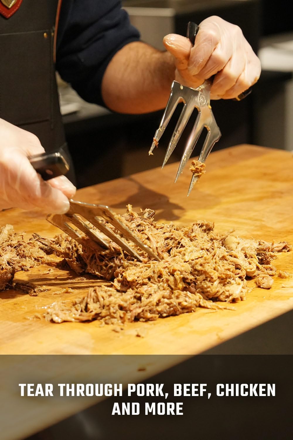 - Treat yourself or the pitmasters in your life. The ultimate gift for true BBQ enthusiasts, each super robust claw features four razor-sharp prongs, forged from tempered, premium SUS304 stainless steel for shocking strength and sharpness. No thin, bendy steel or cheap plastic here. Perfectly shred barbecued or smoked meats and more in a fraction of the time, maximizing texture and flavor.