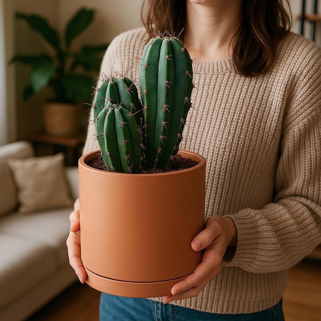 - Round Cylinder Design – porous terracotta clay material for succulent plants.
