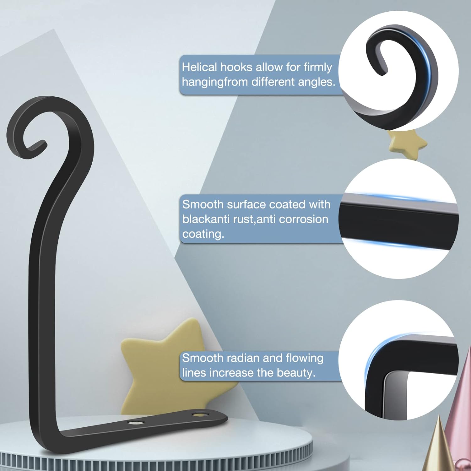 - 【EXCELLENT TECHNOLOGY】These hanging plant hooks adopt high quality solid metal structure, which is firm and not easy to bend. The surface of our hooks for hanging plants outside is coated with black coating, which is rust proof and durable. You can fix plant hanger bracket on the outdoor wall of your house without worrying about wind and rain