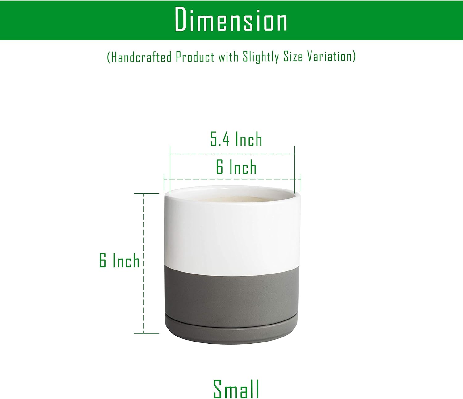 - Pack of 2 Planter Pots: 6" Diameter (5.4" Inner Diameter) * 6" Height.