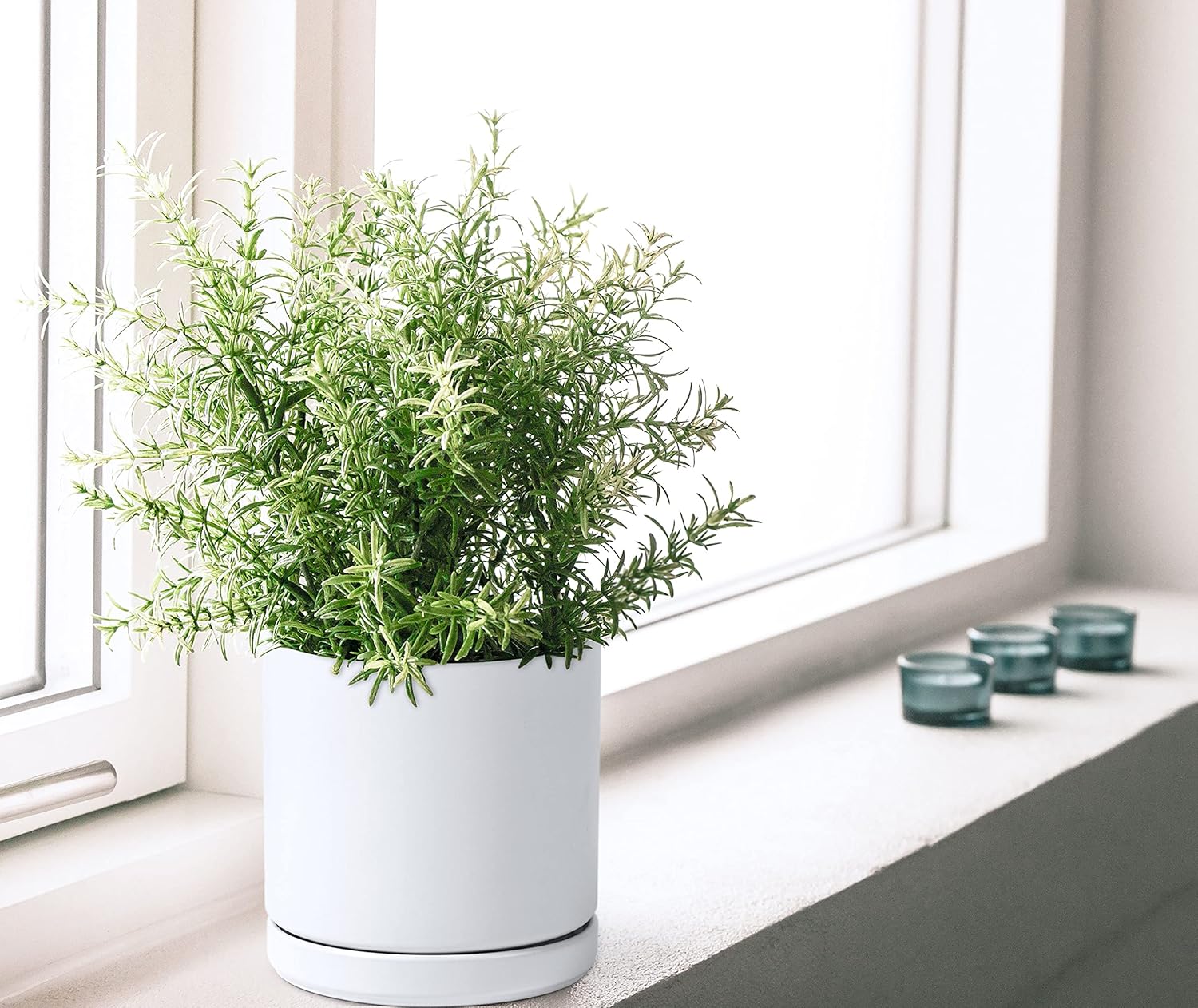 D'vine Dev Set of 2 Plants Pots, 6 Inch Ceramic Planter Pot for Plants with Drainage Hole and Saucer, White, 94-V-C-1