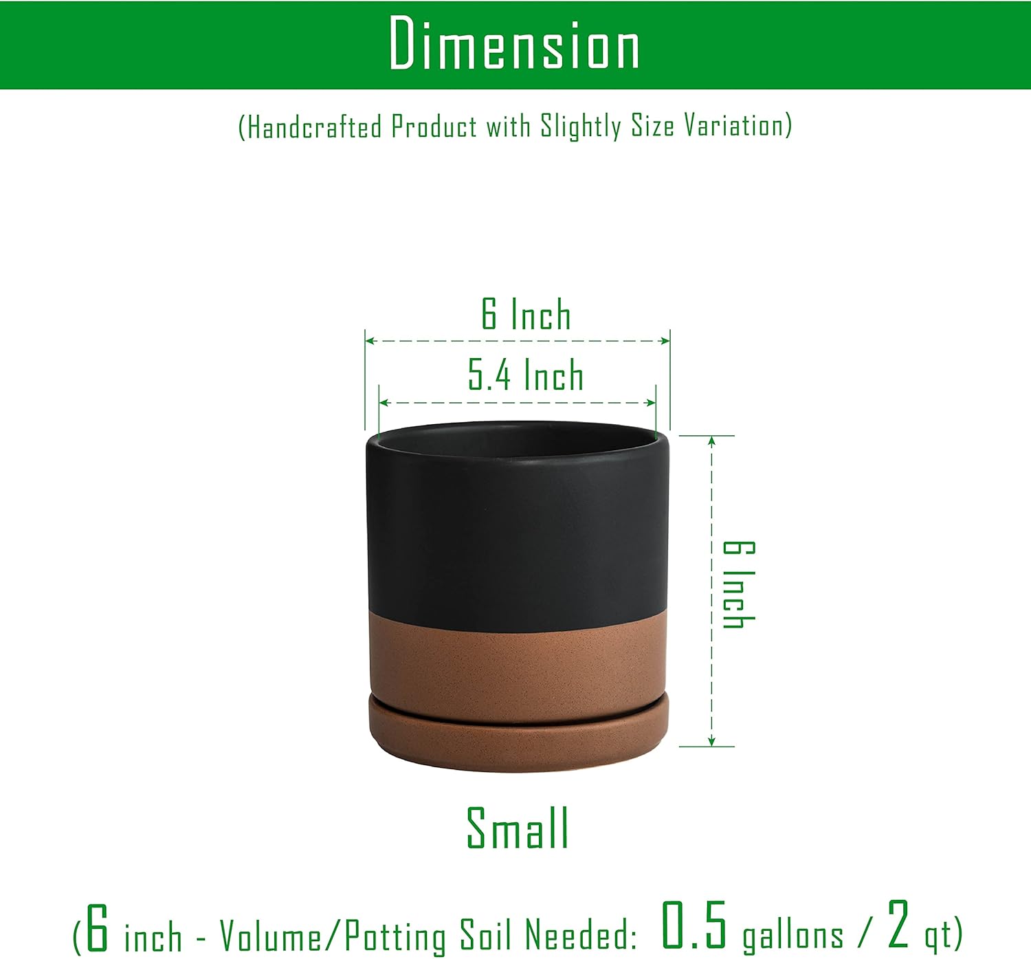 - Pack of 2 Planter Pots: 6" Diameter (5.4" Inner Diameter) * 6" Height. Potting Soil Needed: 0.5 gallons / 2 qt.
