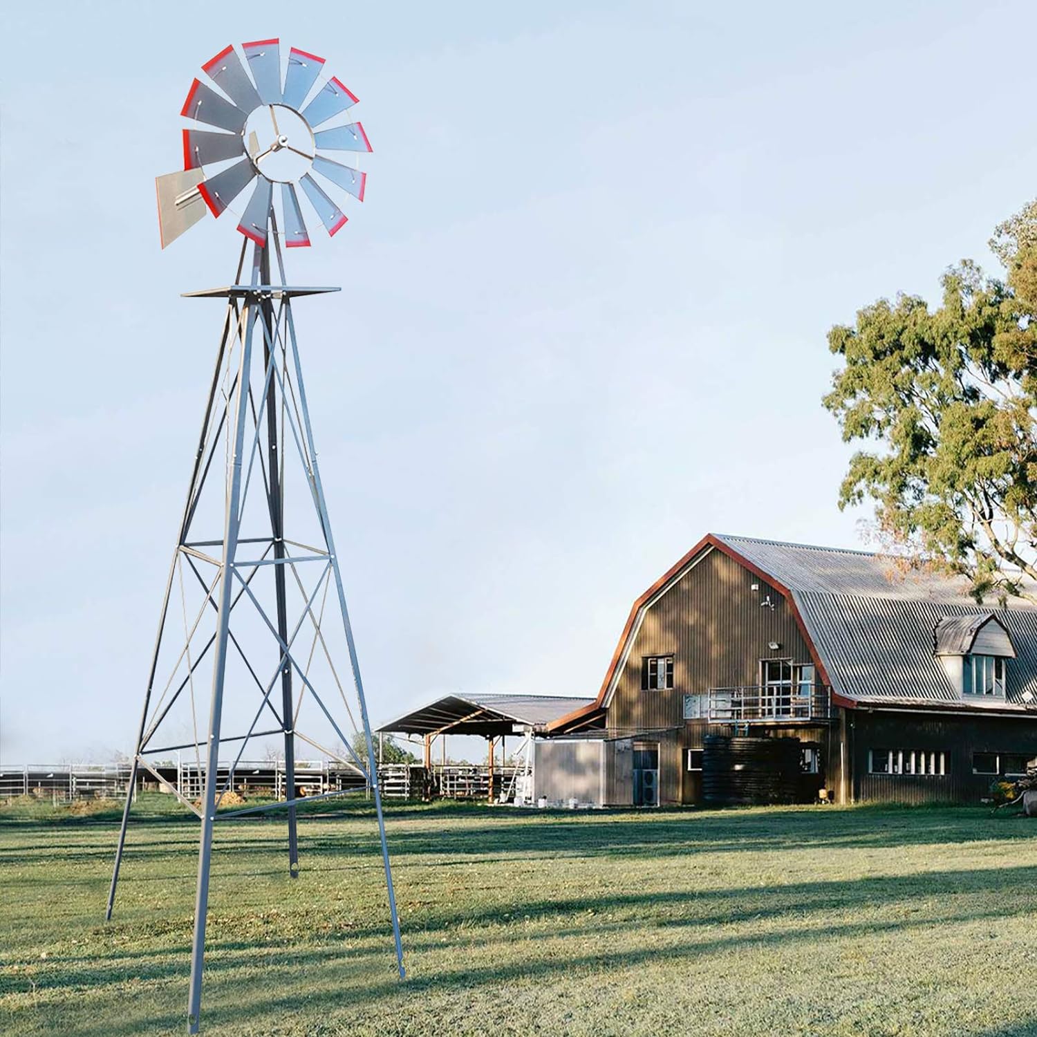 - 『Durable Construction』:Windmills are made of durable steel and are corrosion-resistant and rust-proof. The windmill, designed with four legs, is rugged and durable, and will be built throughout the season. Windmill roller bearing sealed design, easy to rotate, effortless.Garden Yard Windmill 8FT Windmill