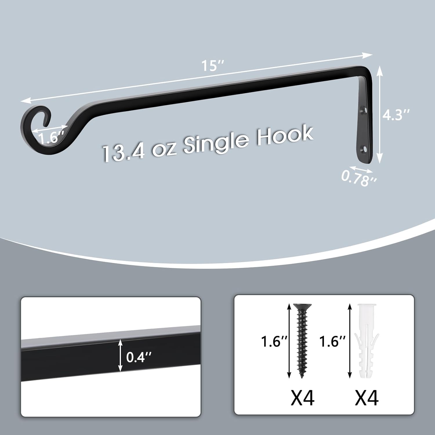 - 【SIZE & AESTHETICS】The length of each hanging plant bracket is about 15 inches, the height is 4.3 inches, and the diameter of our plant hanging bracket is 0.4 inches. The screw’s length is 1.6 inches. The black appearance and retro design make your garden more elegant and beautiful with classical and modern elements.