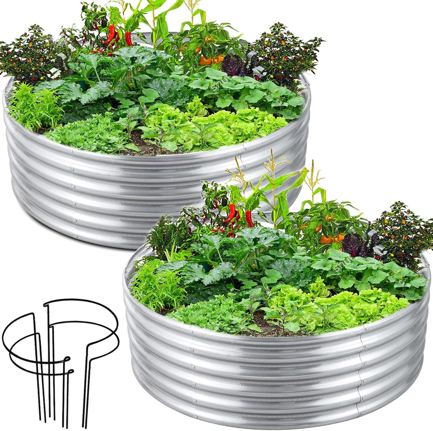 FORTUNO 2 Pack 3 Ft Round Galvanized Raised Garden Bed Box 36 Inches Metal Outdoor Flower Bed Steel Patio Ground Planter for Planting Vegetables and Herb, Silver