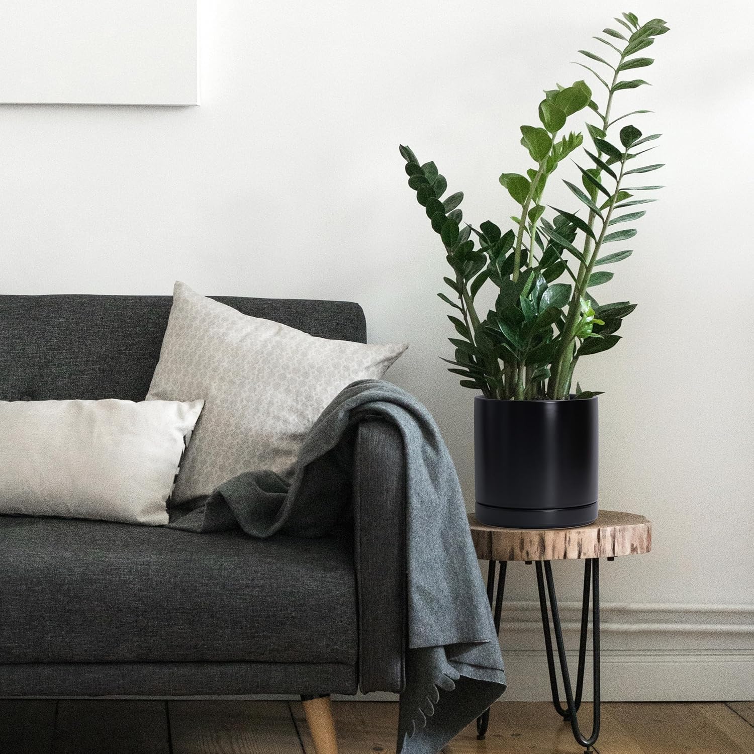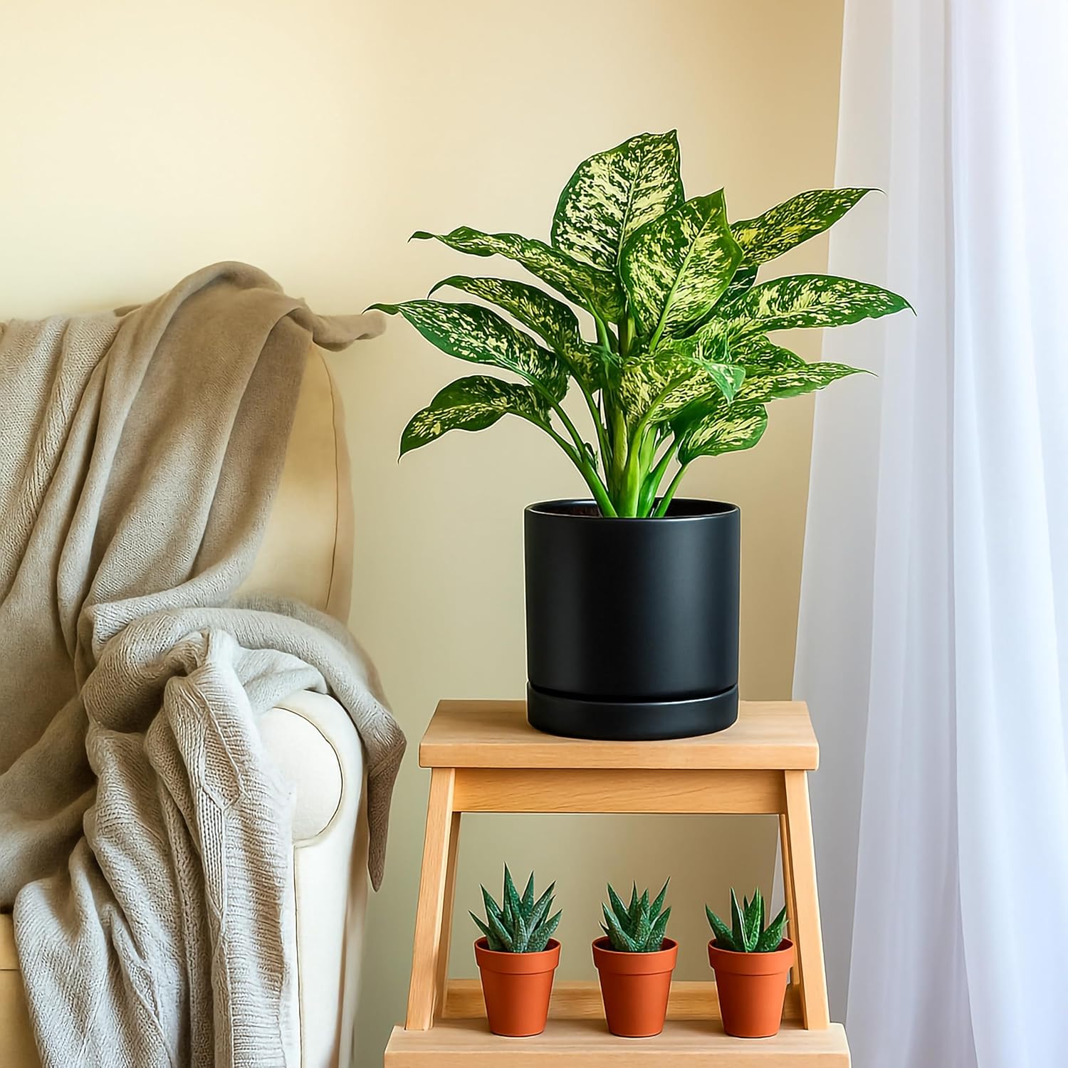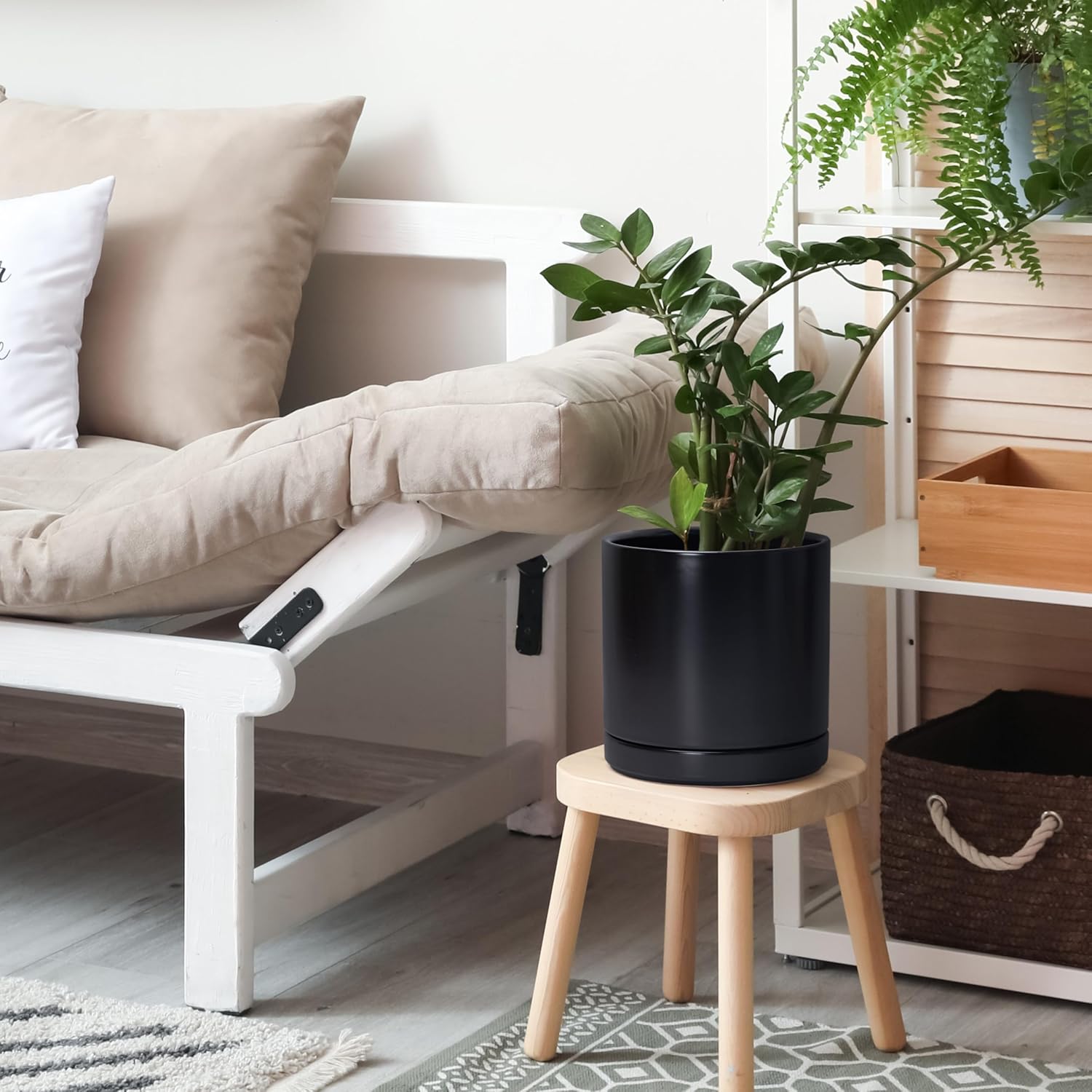 D'vine Dev Set of 2 Plants Pots, 8 Inch Ceramic Planter Pot for Plants with Drainage Hole and Saucer, Black, 94-V-D-2