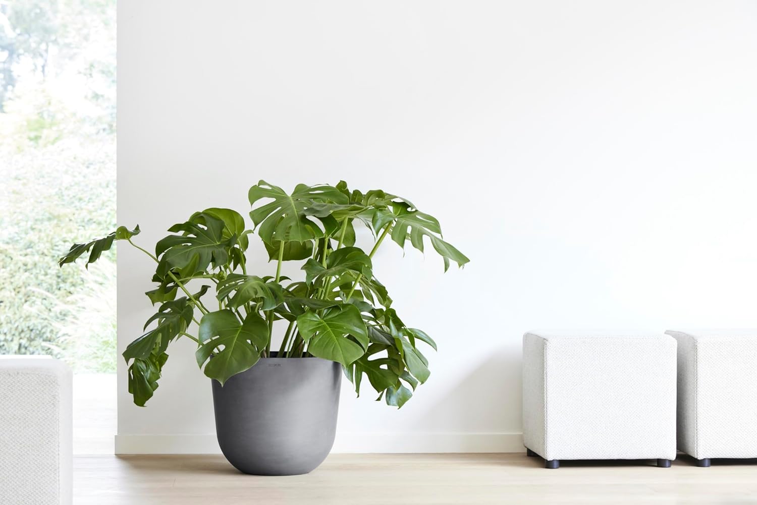Ecopots Oslo Durable Modern Round Indoor/Outdoor Recycled-Based Composite Flower Pot Planter, Grey, 17.75"