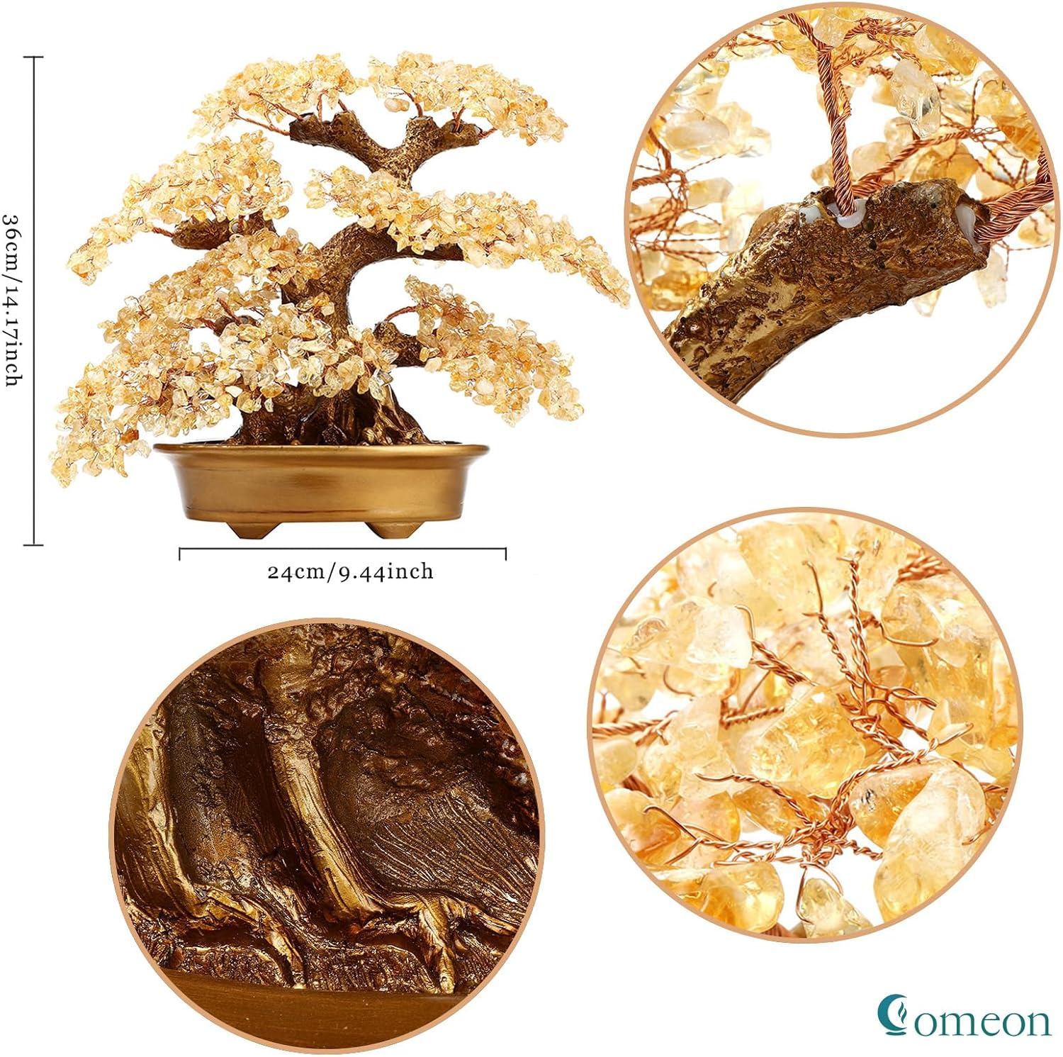 Feng Shui Money Tree Large Pine Tree Style Crystal Quartz Lucky Tree Gem Tree for Office Home Feng Shui Decoration for Wealth/Fortune and Luck (Yellow)