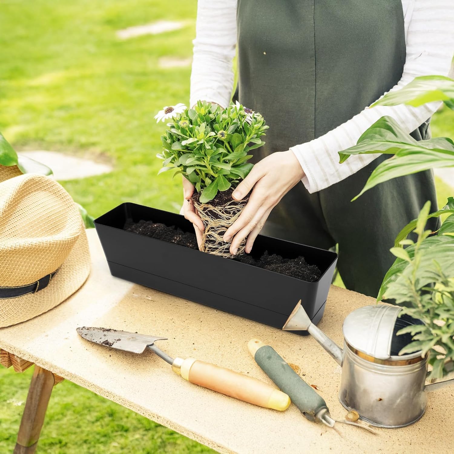 - 【Functional Succulents Herbs Planter】 Window Box is widely used to plant on the kitchen window, rural fence, deck, windowsill, patio, porch, desk, office, indoor and outdoor. Rectangle Planter is a great choice to be a gift for family, friends and co-workers.
