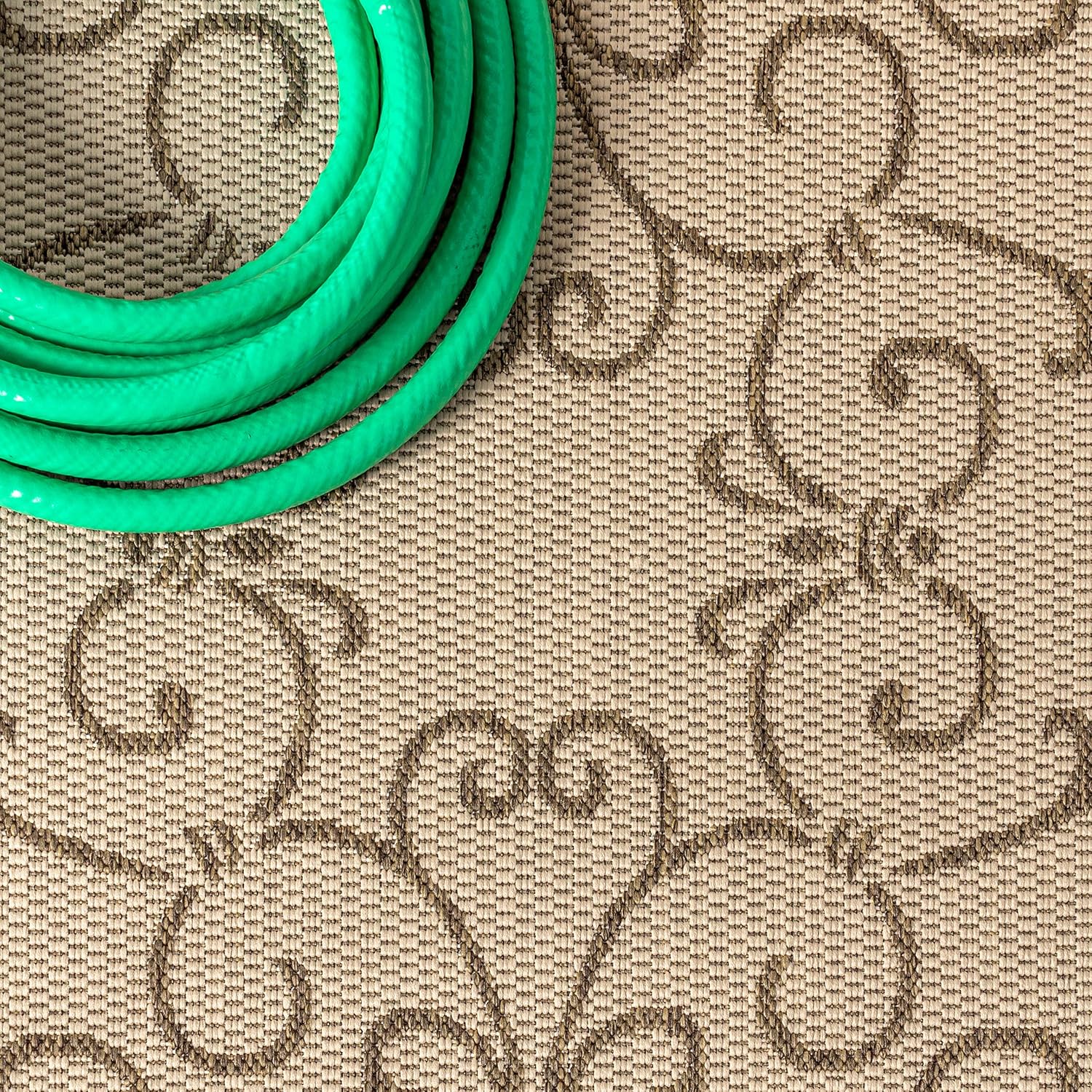 JONATHAN Y SMB106A-5R Charleston Vintage Filigree Textured Weave Indoor Outdoor Area Rug Classic Coastal Easy-Cleaning Bedroom Kitchen Backyard Patio Non Shedding, 5' Round, Beige/Brown