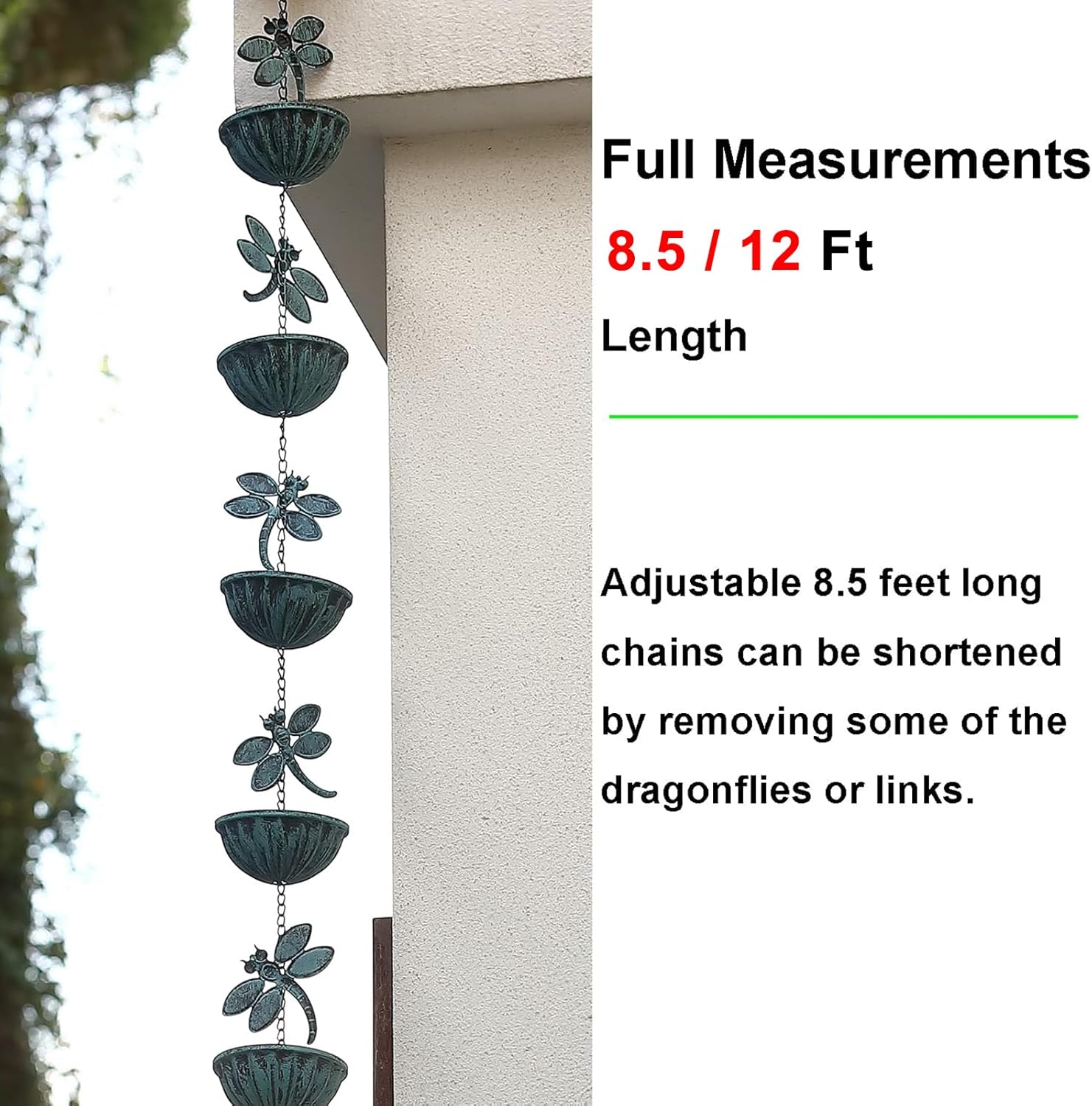 Iron Dragonfly Rain Chain for Gutters, 8.5-Feet Length, Distressed Blue