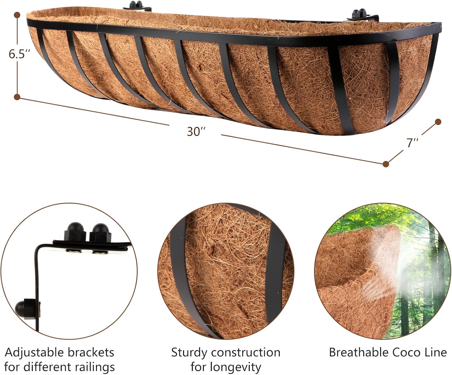 4 Pcs 30“ Window Box Deck Railing Planter with Coco Liner for Outdoor Balcony Porch Fence Patio Rail