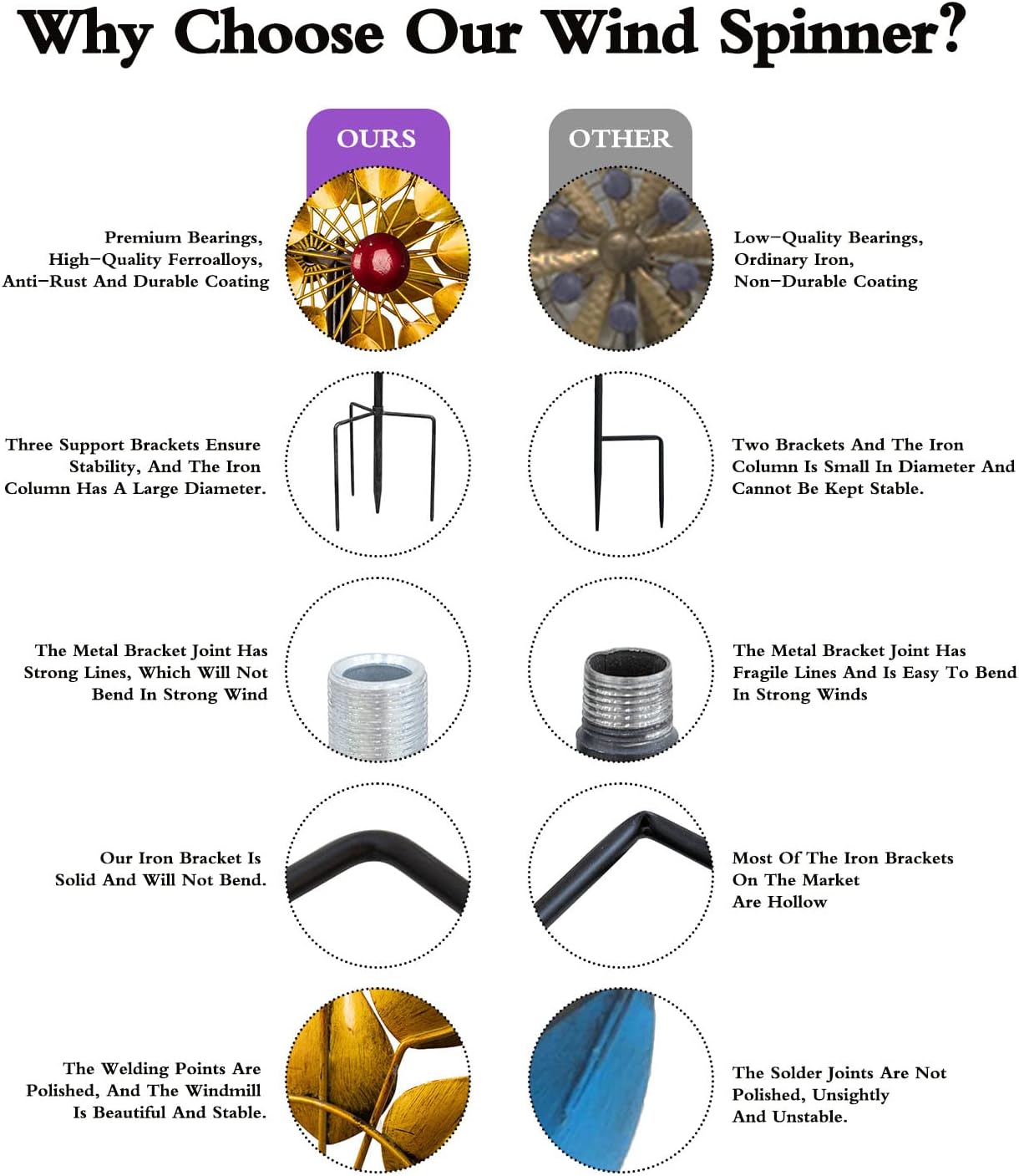 - Stronger and More Stable: Upgraded thick metal pole and sturdy pile (3 feet to form a triangular structure) to strengthen the stability of the entire Wind Sculpture that can resist strong winds