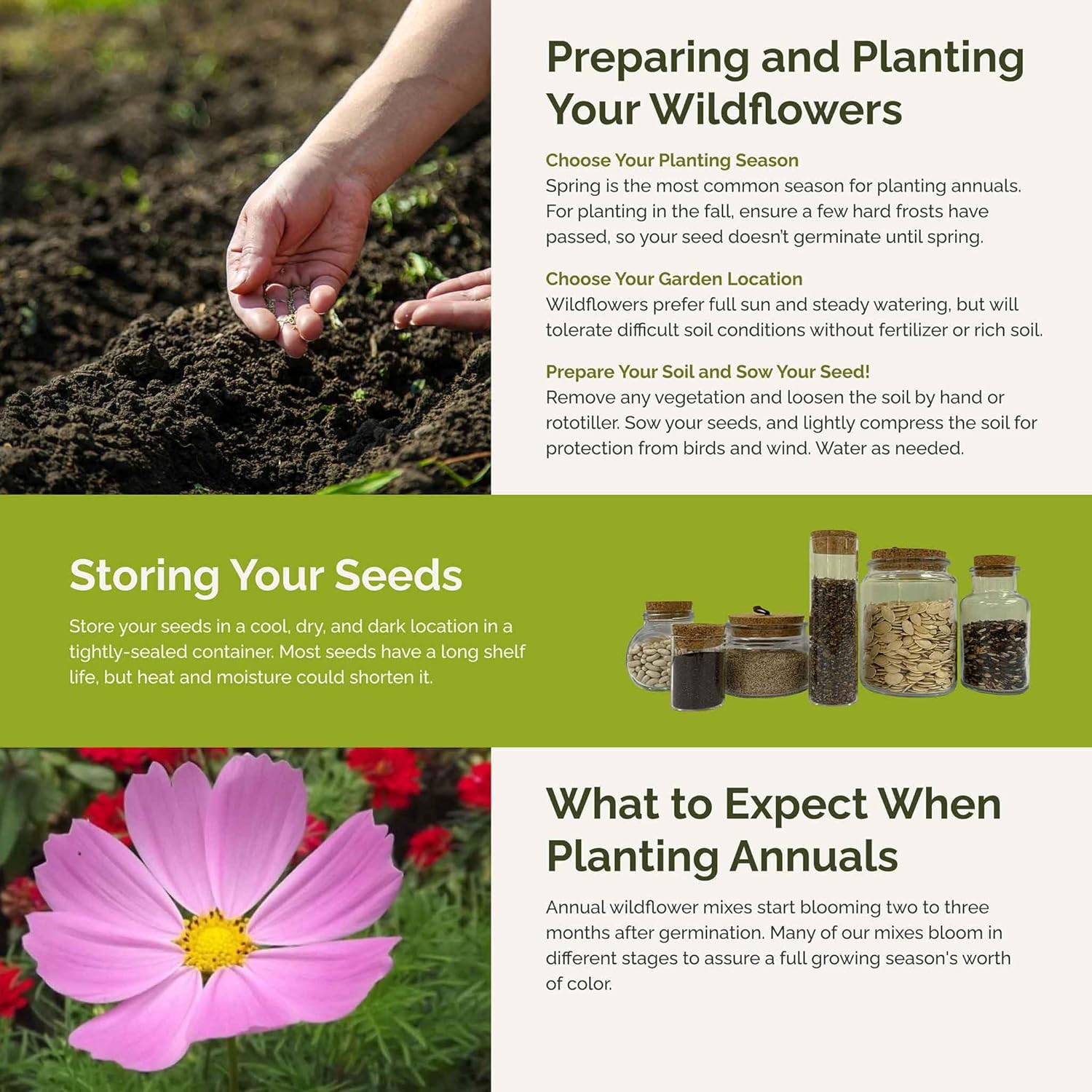 - Attracts Pollinators - With up to 1,200 square feet of ground cover, this non-GMO seed mix is sure to bring the bugs and birds to your yard! Easily attract bees, butterflies, and hummingbirds to pollinate blooms.