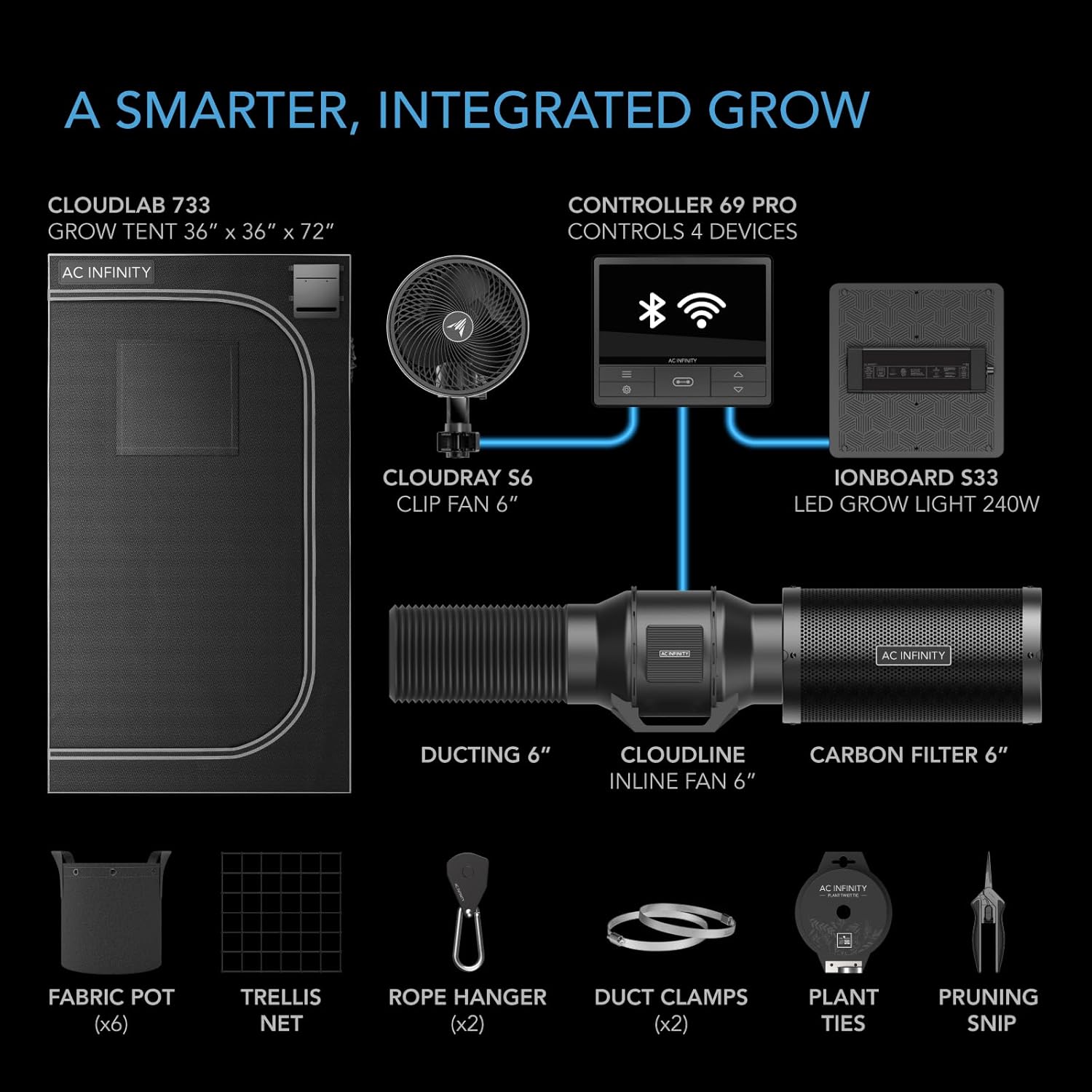 - An advance grow tent kit with smart controls and integrated components to start an indoor growing system.