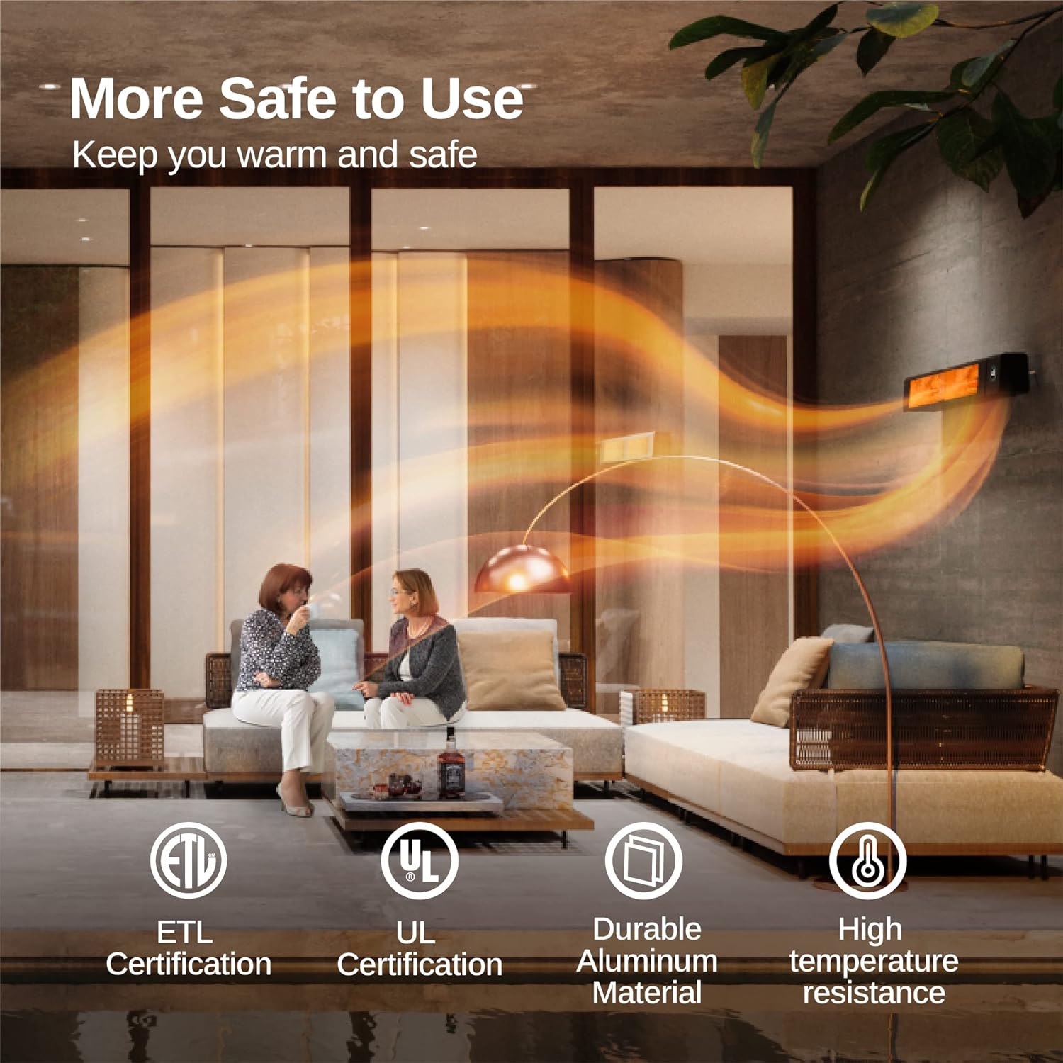 - HIGH-LEVEL IP65 WATERPROOF&DUSTPROOF: This patio heater is equipped with new connection structure that is completely waterproof and dustproof. With IP65 protection rating and ETL & UL certification, it can withstand any element, making it perfect for home, backyard, garages, outdoor patios, etc. Create a comfortable environment for both indoor activities and outdoor recreation