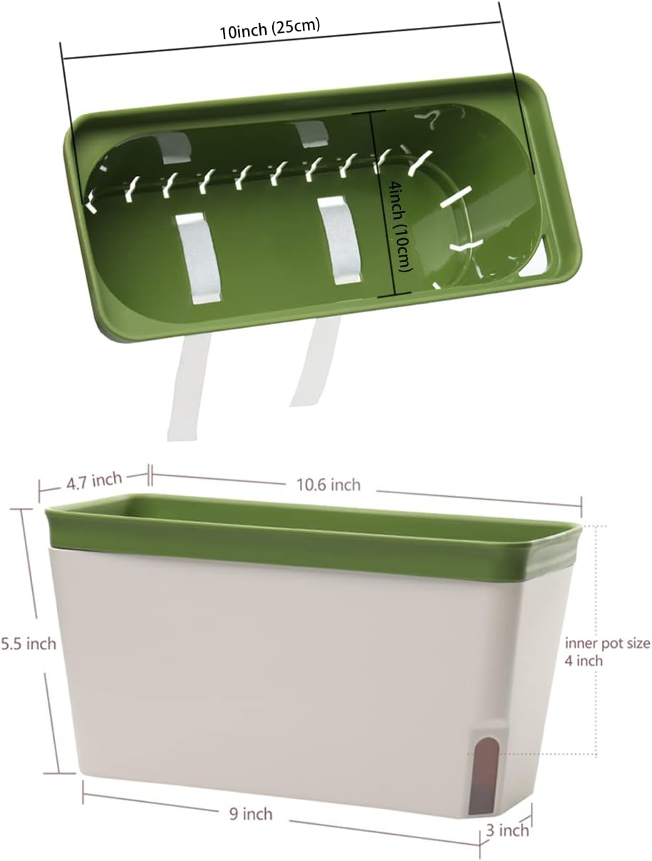 GardenBasix Self Watering Planter Pots Window Box for Indoor Plants Home Garden Modern Decorative Flower Pot for All House Herbs Succulents Set of 6 (6, Green(Rectangle))