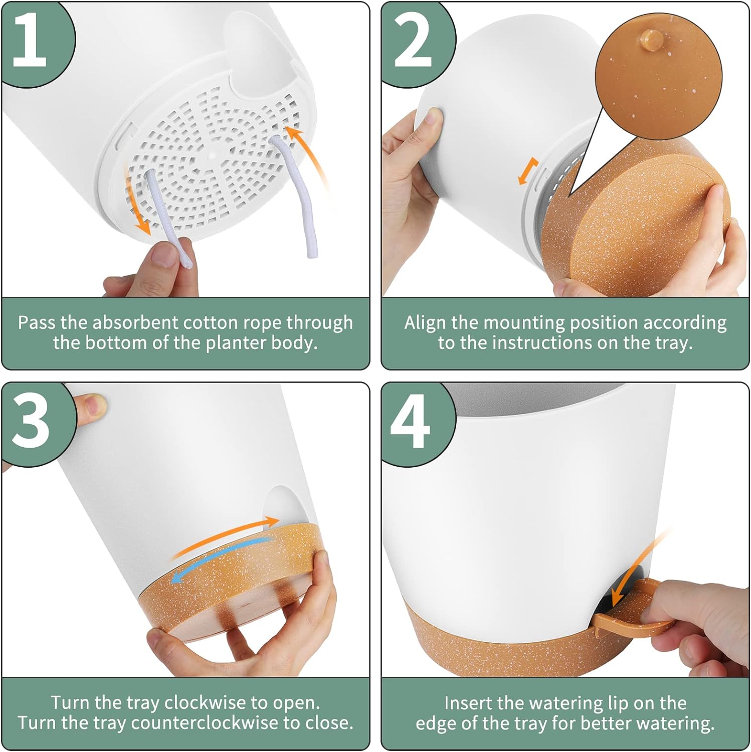 GARDIFE Plant Pots 7/6.5/6/5.5/5 Inch Self Watering Planters with Drainage Hole, Plastic Flower Pots, Nursery Planting Pot for All House Plants, African Violet, Flowers, and Cactus,White