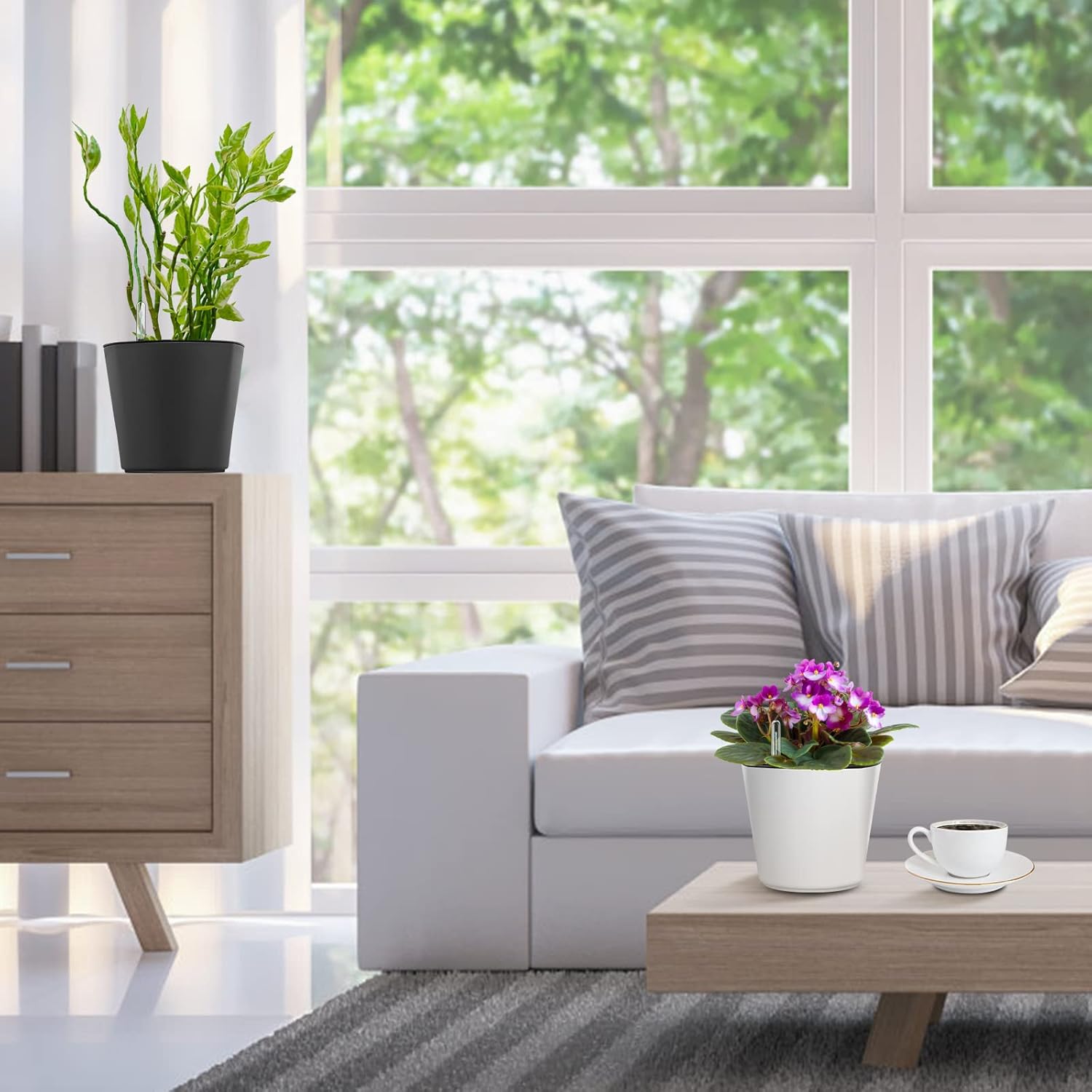 7 inch Plant Pots 3-Pack, Self Watering Flower Pots Indoor Outdoor, African Violet Pots Planters with Drainage Hole Saucer Reservoir, White