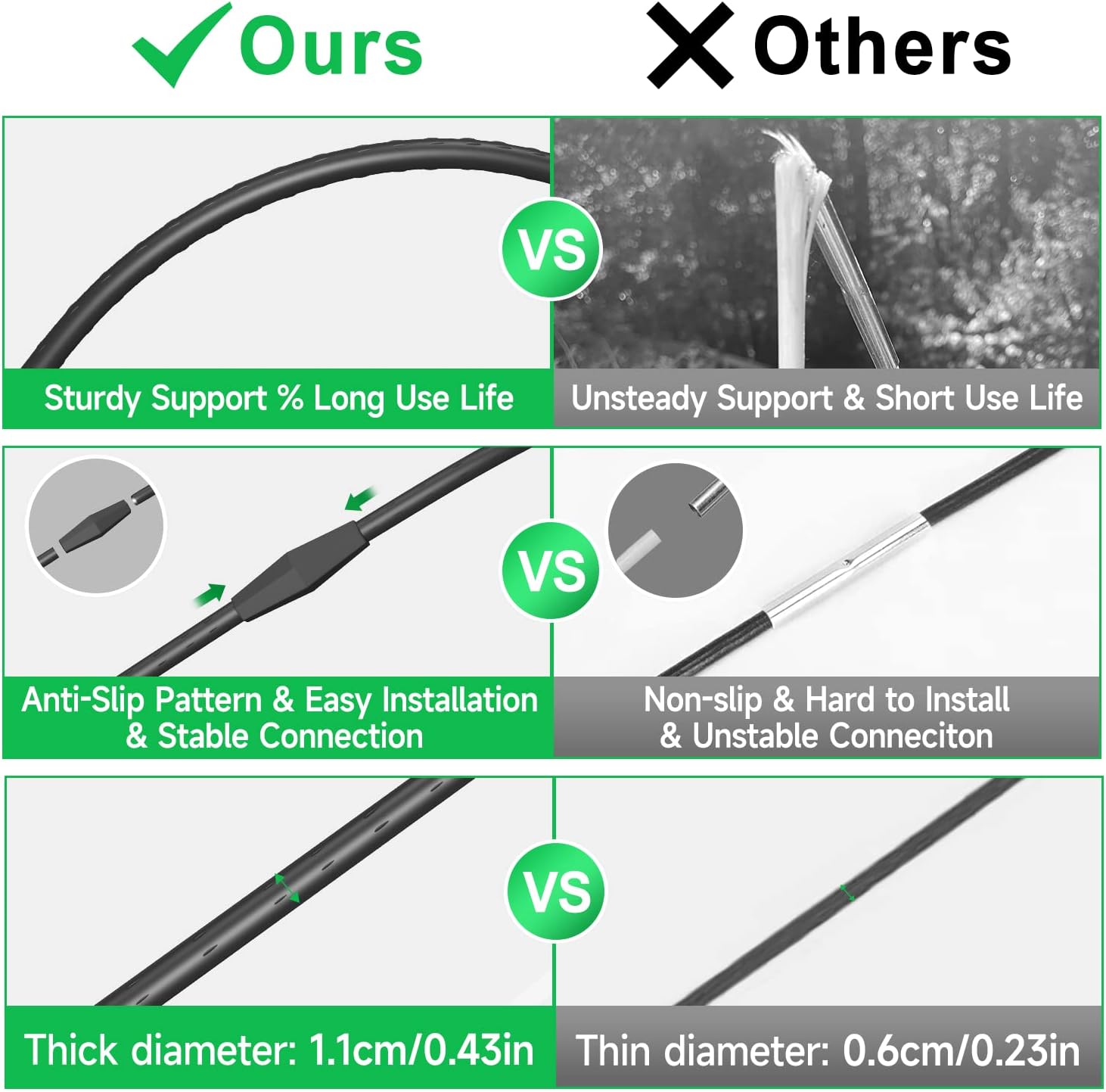 - ►High-quality&Durable:--High-quality plastic coated steel pipe, not easy to rust, The diameter is 11mm (0.43inch), very firm and stable in shape. Strong wind resistance, can also be covered by with film or other cloth,can withstand rain or snow weather to protect the plant.