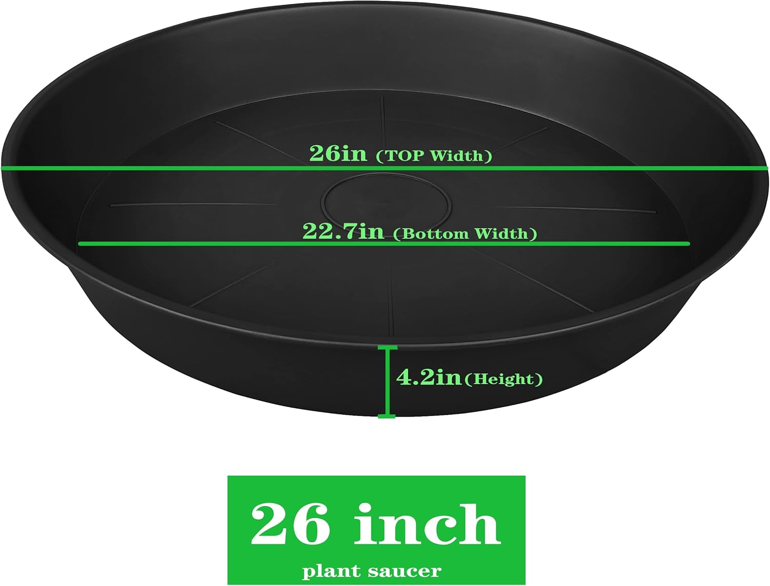 - 【SATISFACTION】Bring you the best products and services. 26 inch Plant saucer are designed to make you happy, use plant saucers inside home or outdoor, garden or patio, while not to worry about under and over watering plants.