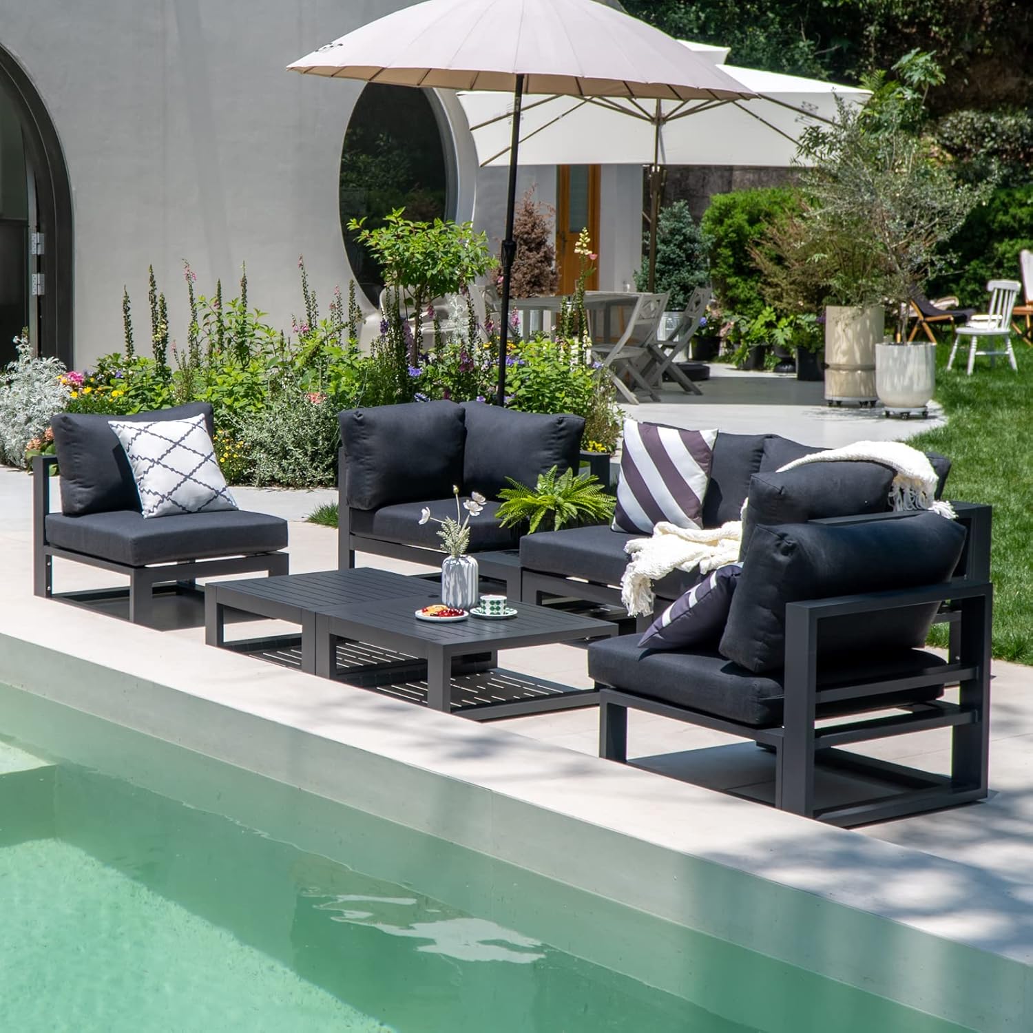 6 Pieces Outdoor Modular Sectional Set Aluminum Patio Conversation Sofa Sets with Armless Sofas, Square Coffee Table, Dark Grey Cushions