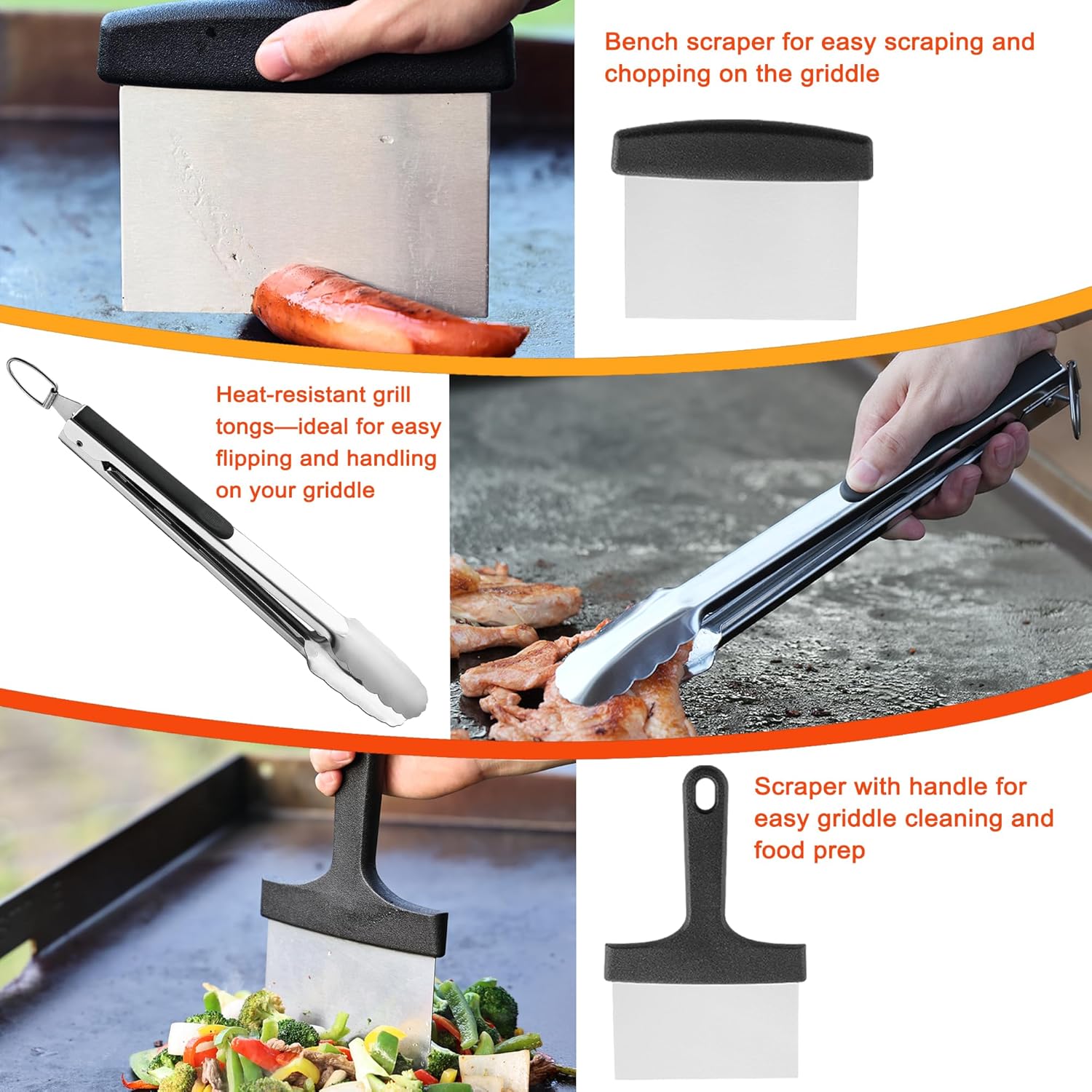 - Versatile Griddle Tools: Perfect for BBQ griddles and other types of grilling; ideal for flipping burgers, pancakes, veggies, and more; a comprehensive addition to your griddle accessories kit