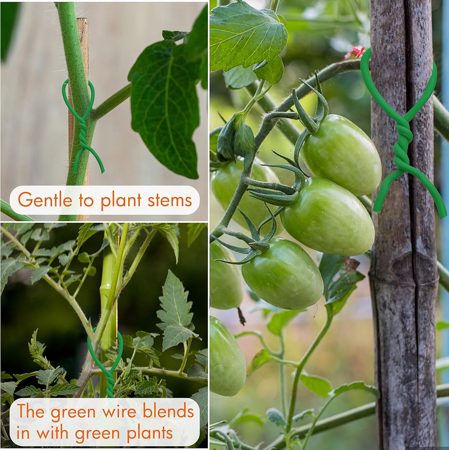 - Gentle on Plants. - Prepare a scissor and cut any length piece needed. Easily twist with no snapping and the tie is gentle to plant stems. The green wire blends in with green plants nicely.
