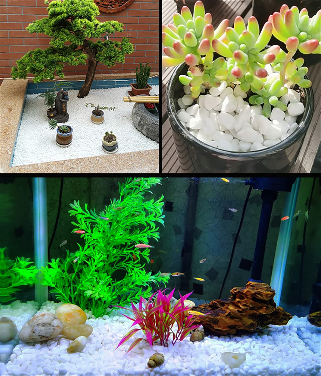 • DECORATIVE ROCKS - Smooth white decor stones can visually complement garden, lawn, potted plant or aquarium. Rocks and garden landscape are a match made in heaven, Adding a unique aesthetic to your landscape design.