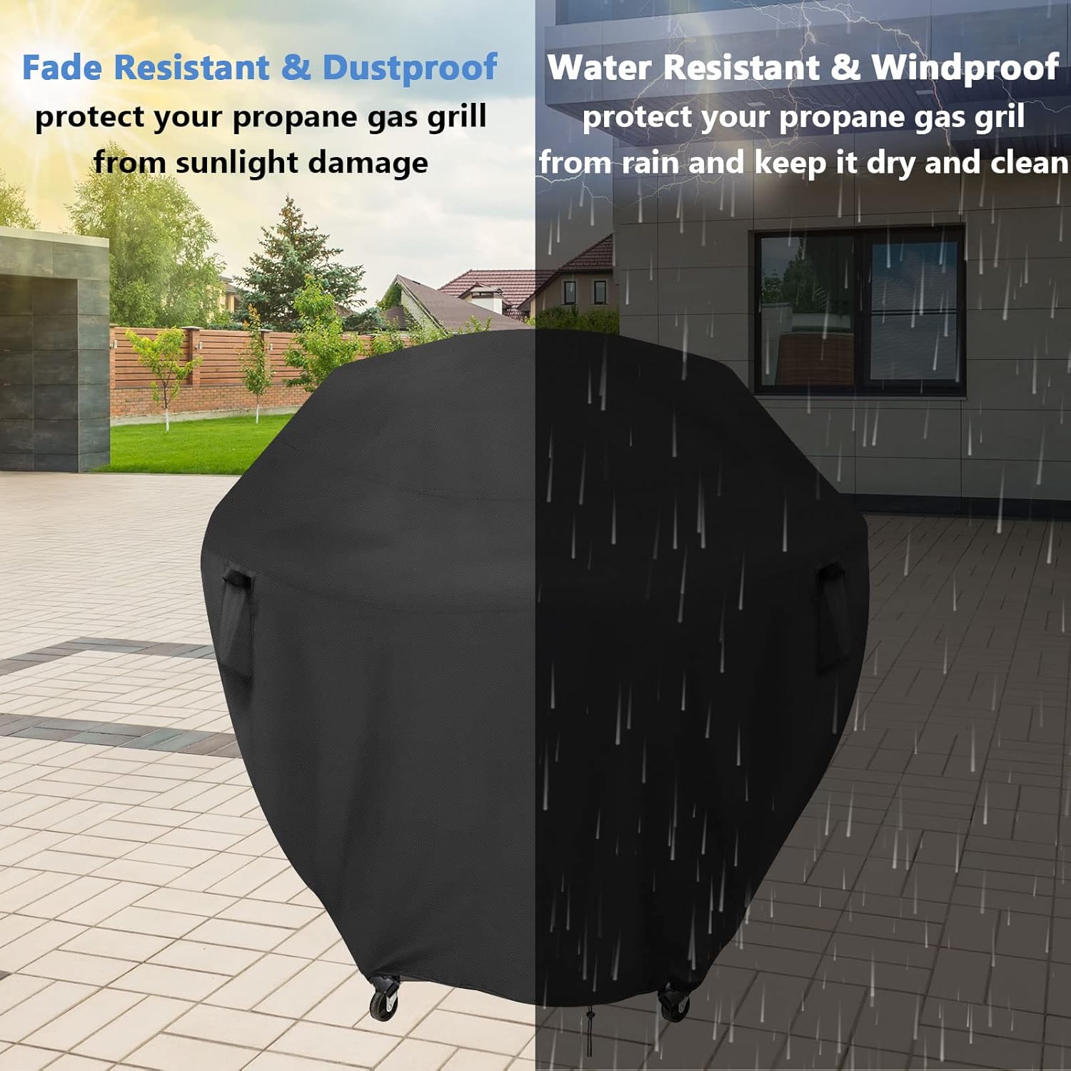 - USER-FRIENDLY DESIGN: The dustproof griddle cover has two handles for taking off easily. And the design of the air vents on the side ensures your outdoor grill cover would not go moldy easily.