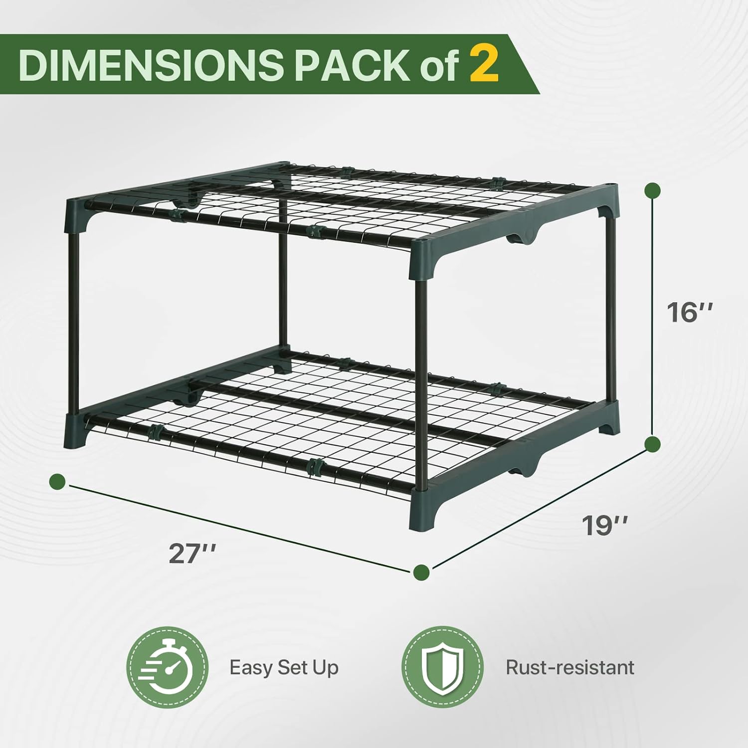 - SPACE SAVING DESIGN: This double 2 tiers outdoor shelving provides space for you to organize your plants. It is also convenient for centralized fertilization and watering. You will never have to inconveniently move the potted plants. Each rack can support up to 22 lbs.