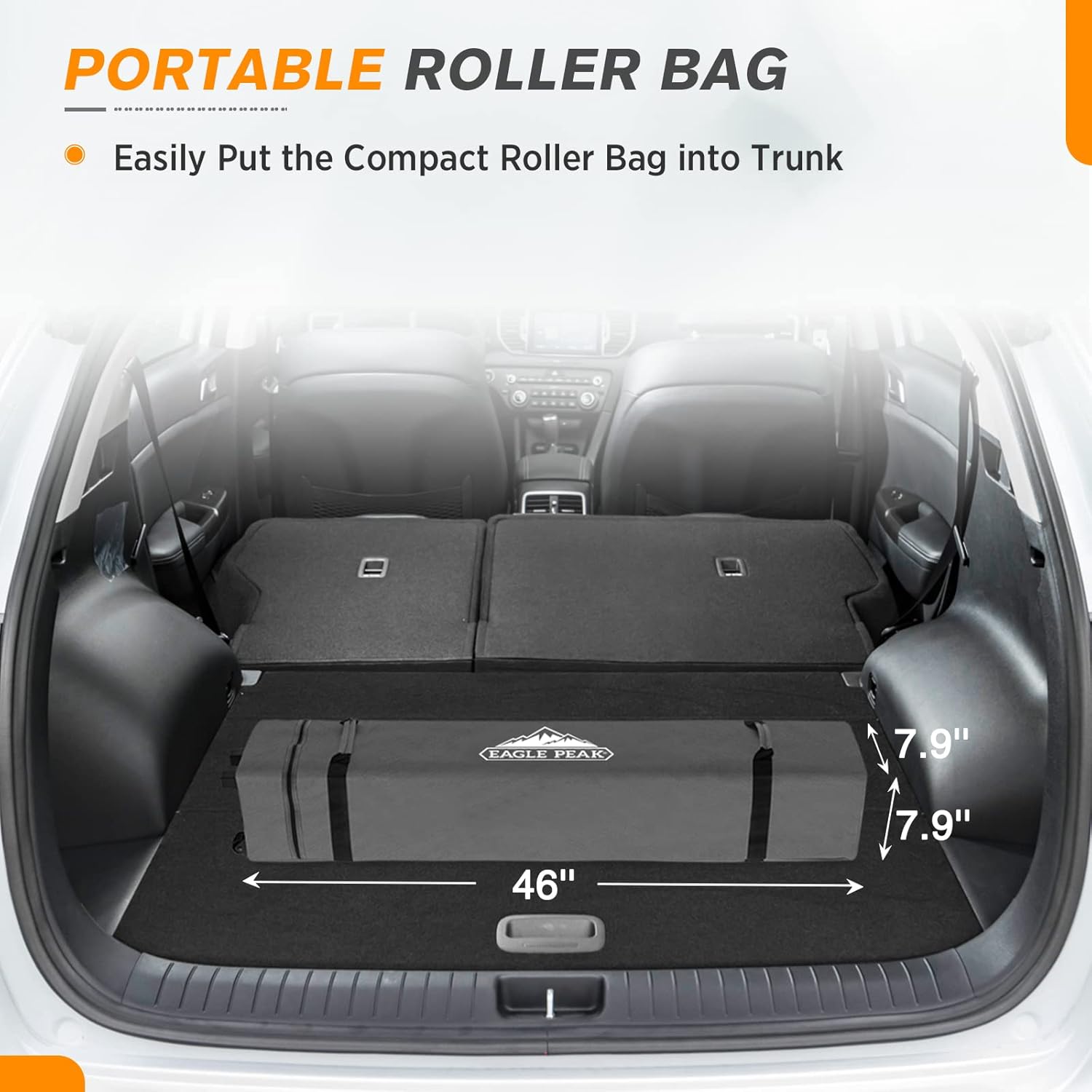 - UPGRADED PACKAGE: This 6.6 x 6.6 ft instant canopy comes with 1 x canopy frame, 1 x canopy top, 1 x roller bag, 4 x guy ropes, 8 x steel stakes. Take this canopy with you anywhere using the portable compact 600x300D wheeled carrying bag