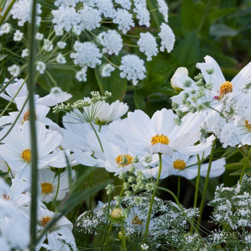 - Cosmos Purity (Cosmos bipinnatus), Bishop's Flower (Ammi majus),