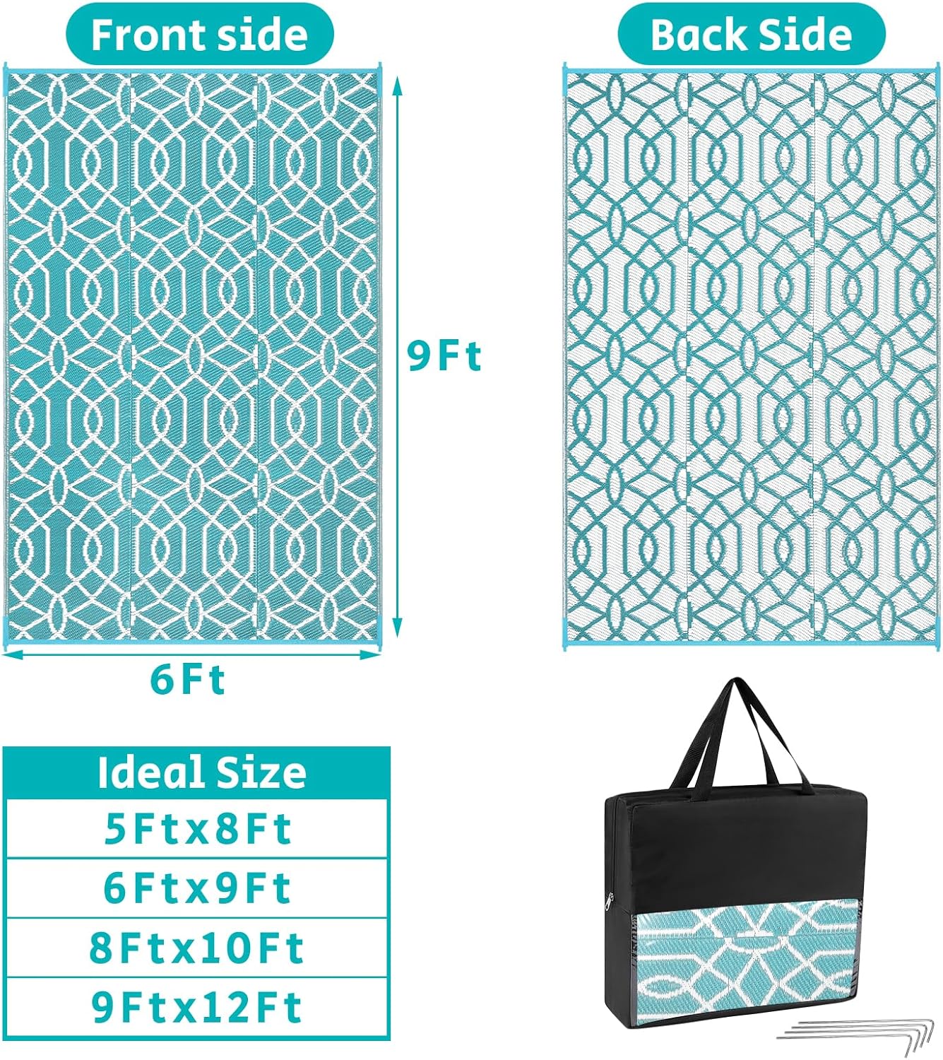 - Versatile Outdoor Carpet: The indoor outdoor plastic rugs have multiple choice in different colors(4'x6',5'x8',6'x9',8'x10',9'x12',9'x18',8'round), is ideal for a variety of indoor outdoor activities,like patio mat, deck rug, garden rug, beach mat, picnic mat, BBQ party mat, rv camping rug,pool rug,outdoor doormat,garage rug,front door mat,allowing you to have plenty of imaginable space for more fun.