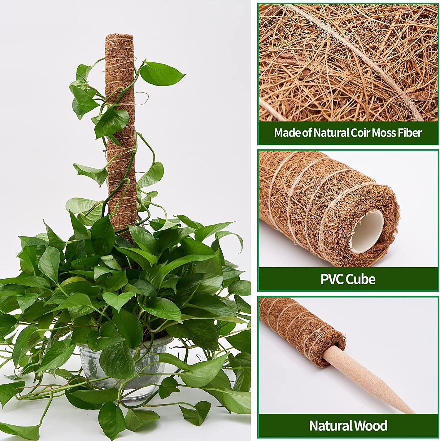 - GENTLE PLANT SUPPORT STAKES - Coconut fiber is gentler on plants than plastic materials, and the moss sticks can provide a good grip for aerial rooting. Moss poles are ideal supports for a variety of indoor and outdoor climbing plants, creepers, creeping plants, especially suitable for monstera, money plants, climbing vines, creepers, ivy, pothos, vanilla, philodendron, chlorophyll plants, small leaf vines, and houseplants