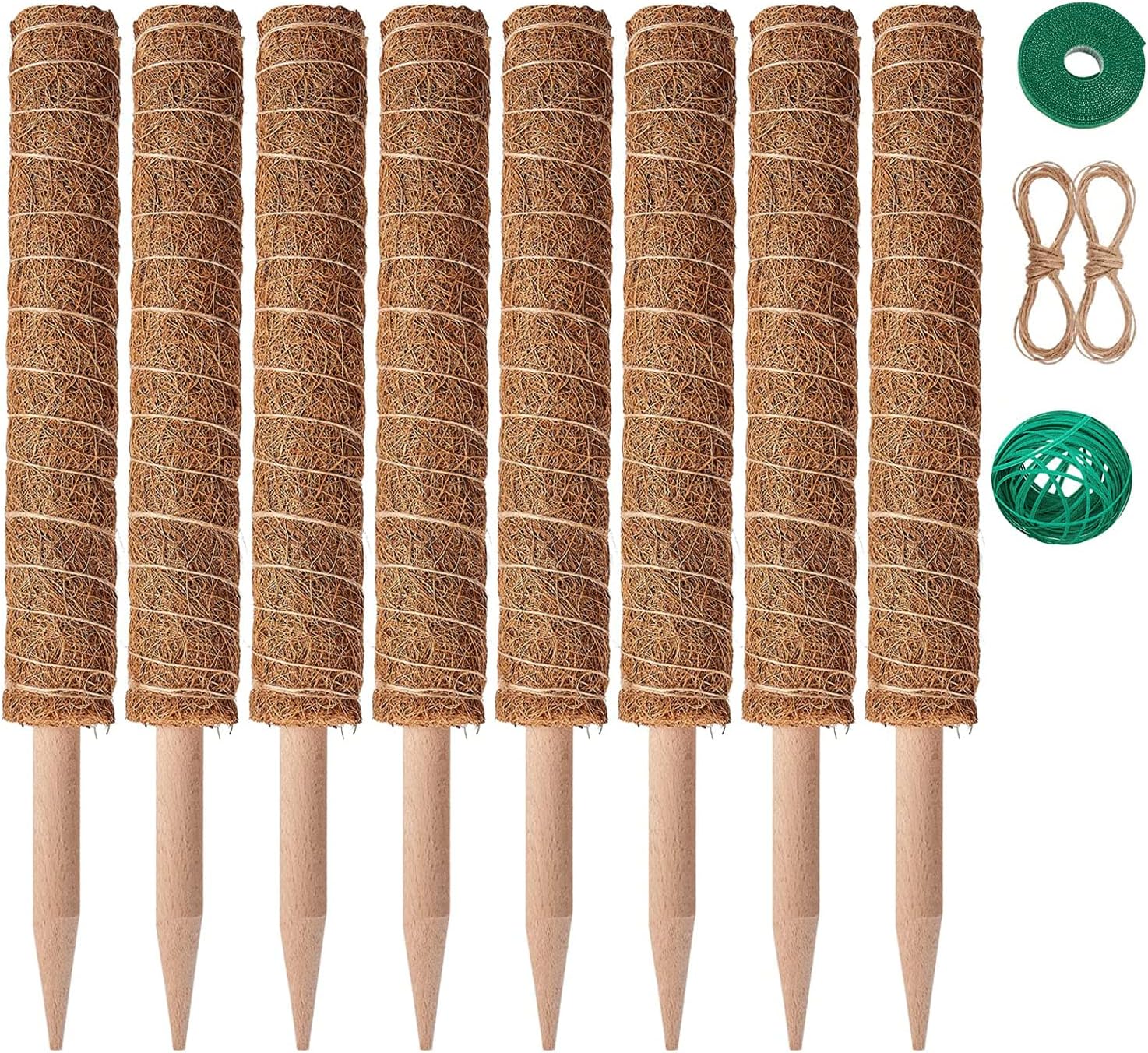 8 Pcs Moss Pole for Plants Monstera, Plant Support Stakes for Indoor Climbing Plants Grow Upwards, with 65ft Twist Ties, 13ft Jute Rope, 6.5ft Hook-and-Loop Strip